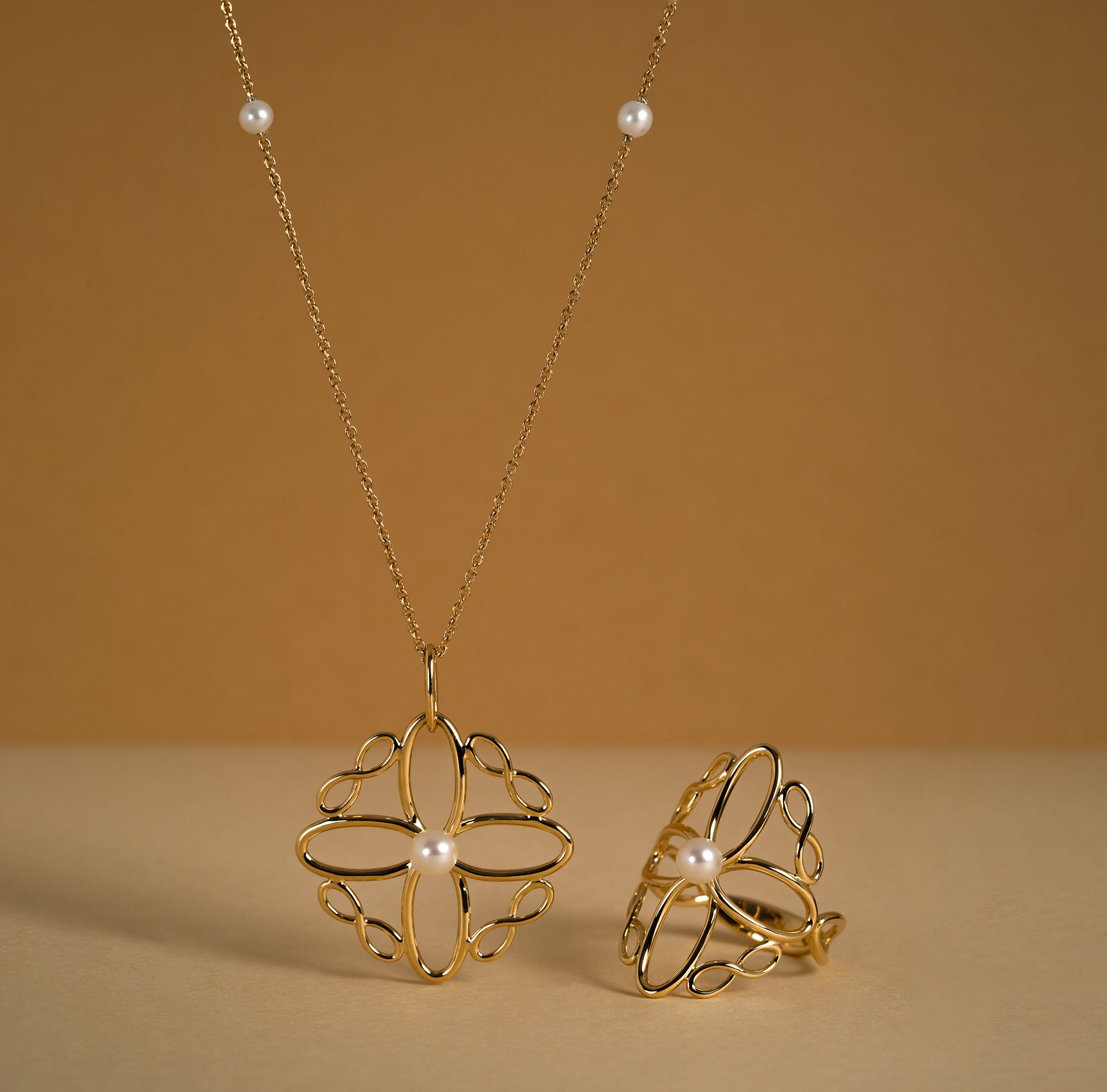 インフィニティが象徴する永遠の輝きを透かし模様で繊細に再現。自然の豊かさと解放感を融合したデザインは、穏やかな日々の流れの中でさえ、洗練された存在感を放ちます。自然界の永続する循環と人の手による芸術の妙技を表したコレクション。
