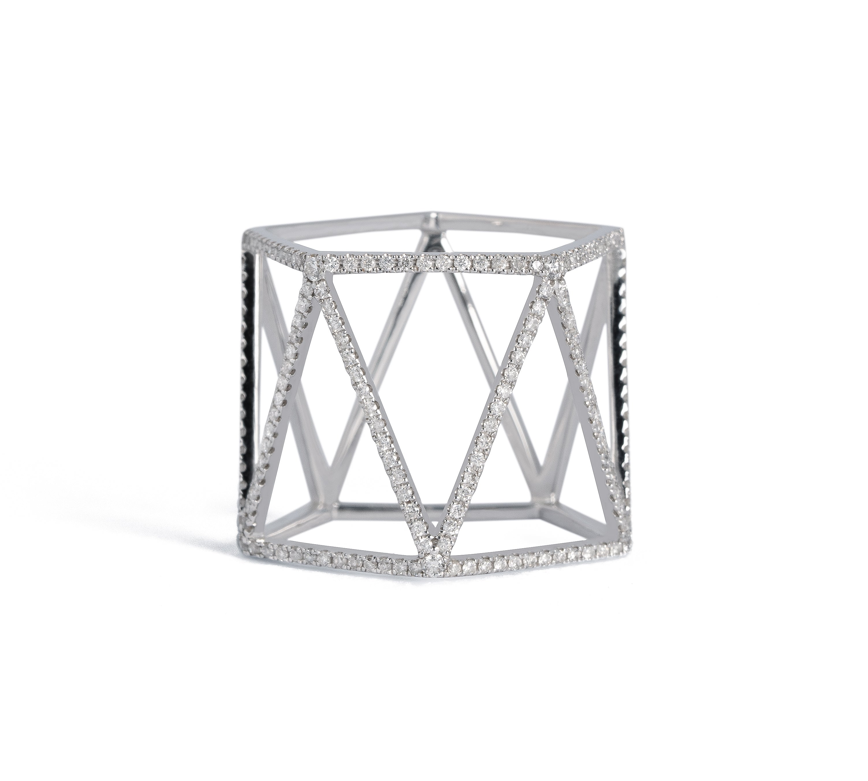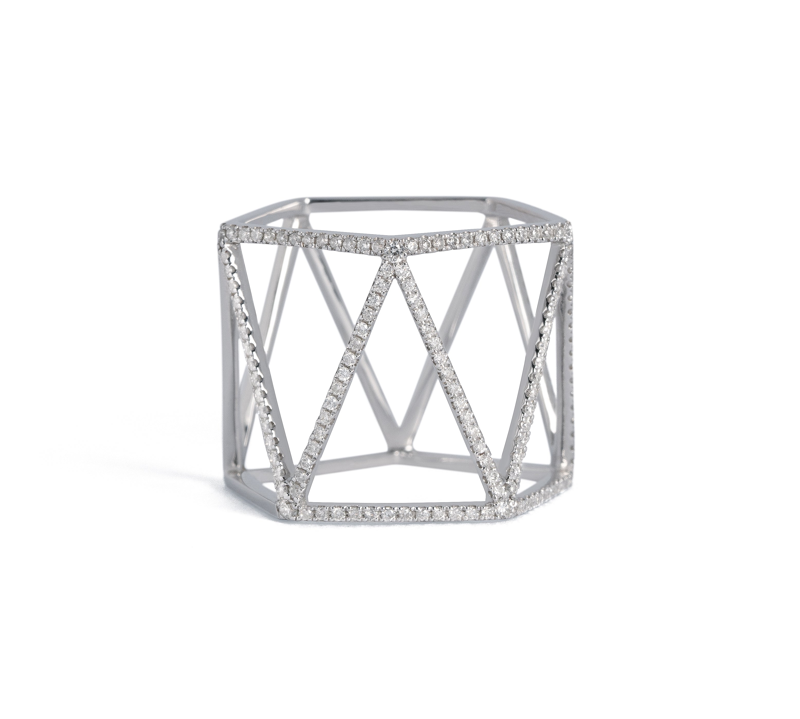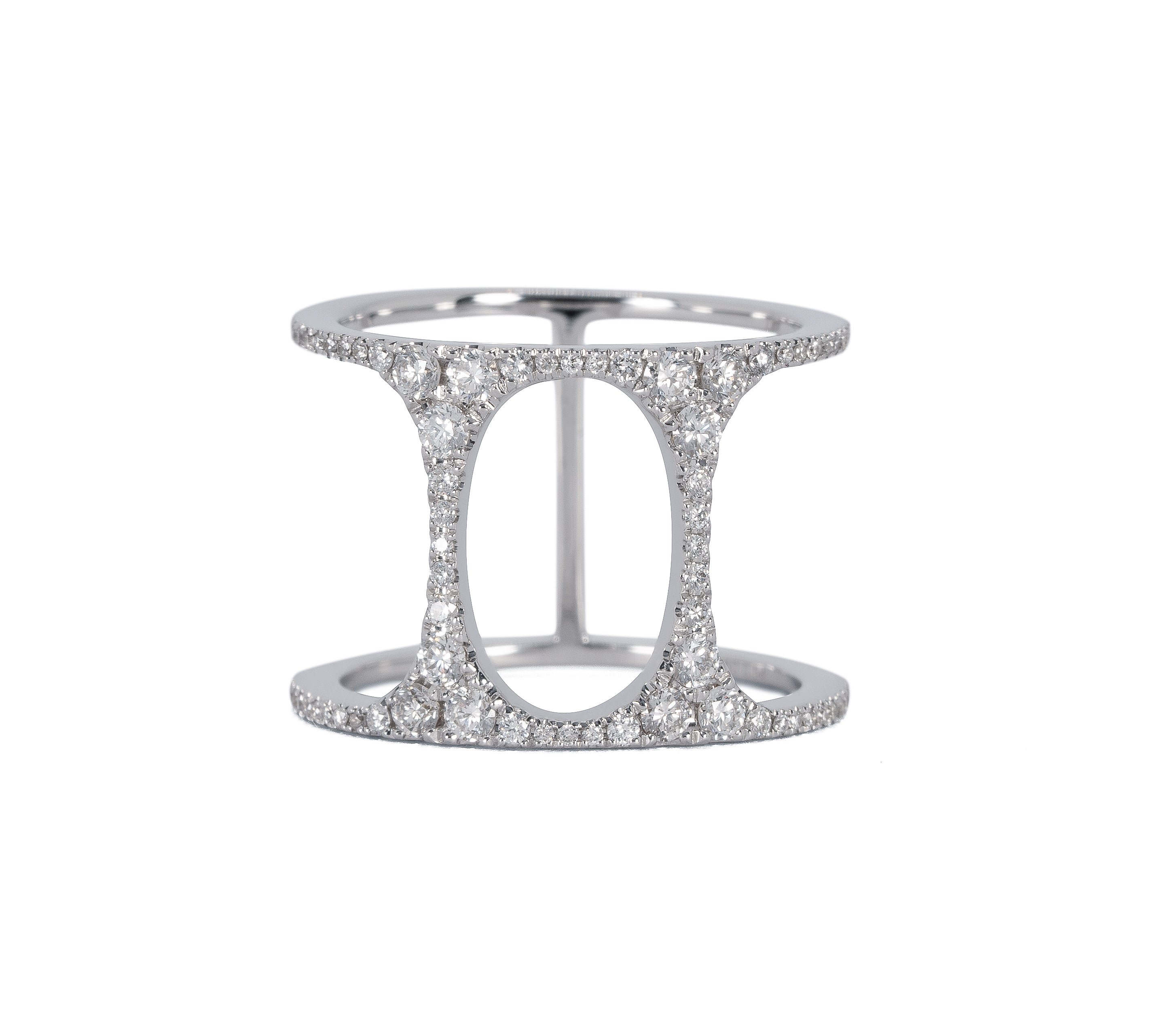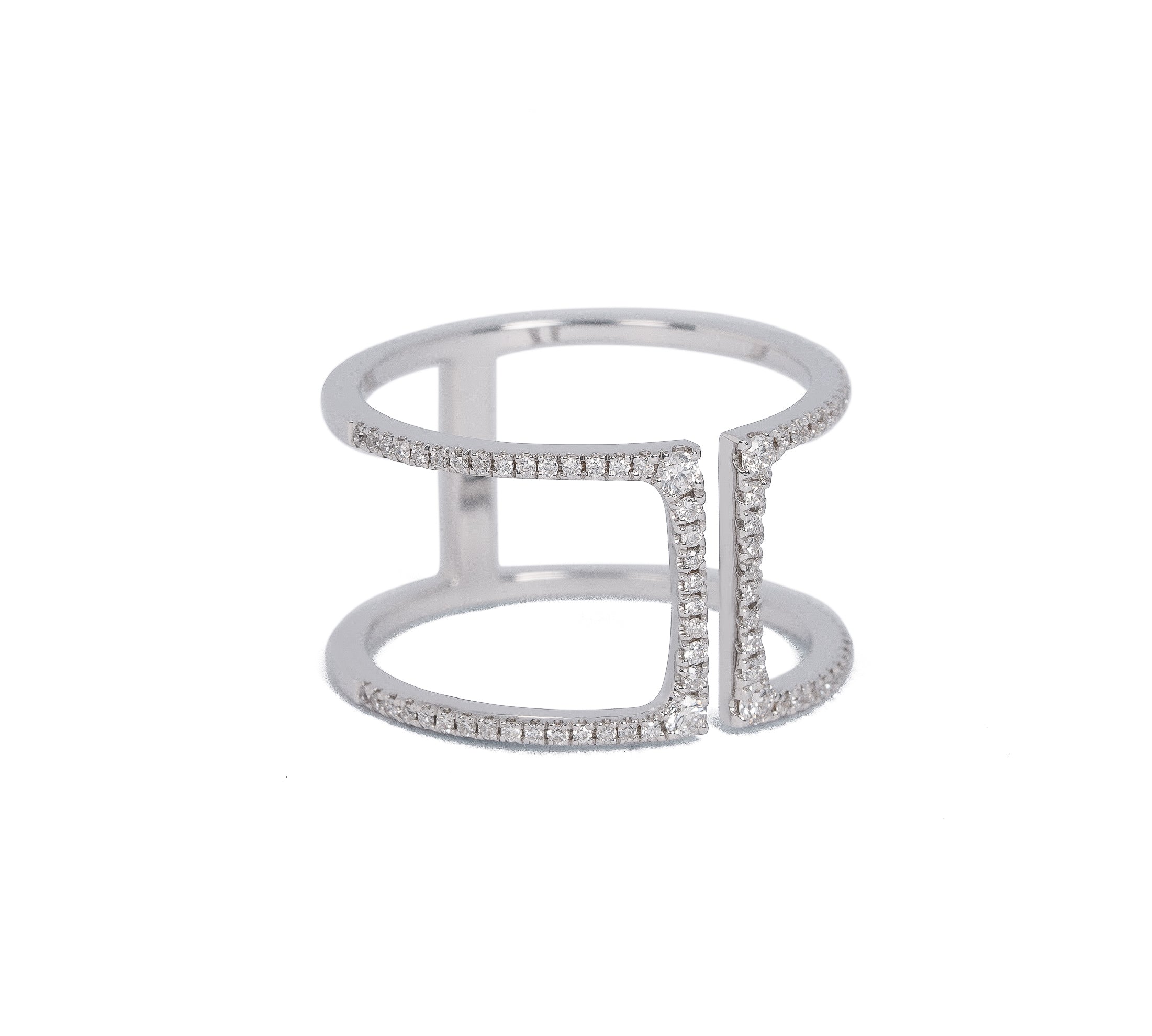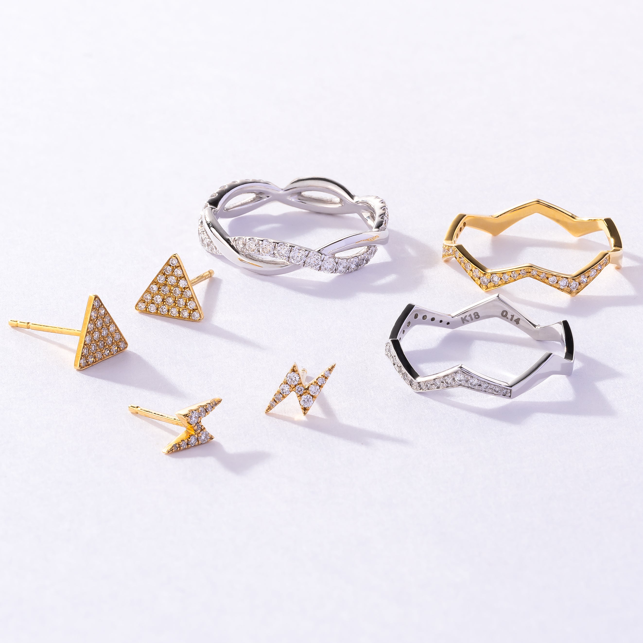 「美しい線の表現」と「大胆な空間使い」が特徴の440ジュエリーの人気コレクションです。精密な直線と優美な曲線が大胆な造形を描きます。 エッジの効いたデザインですが着け心地の良さにもこだわり、デイリーに身につけていただけるジュエリーに。
