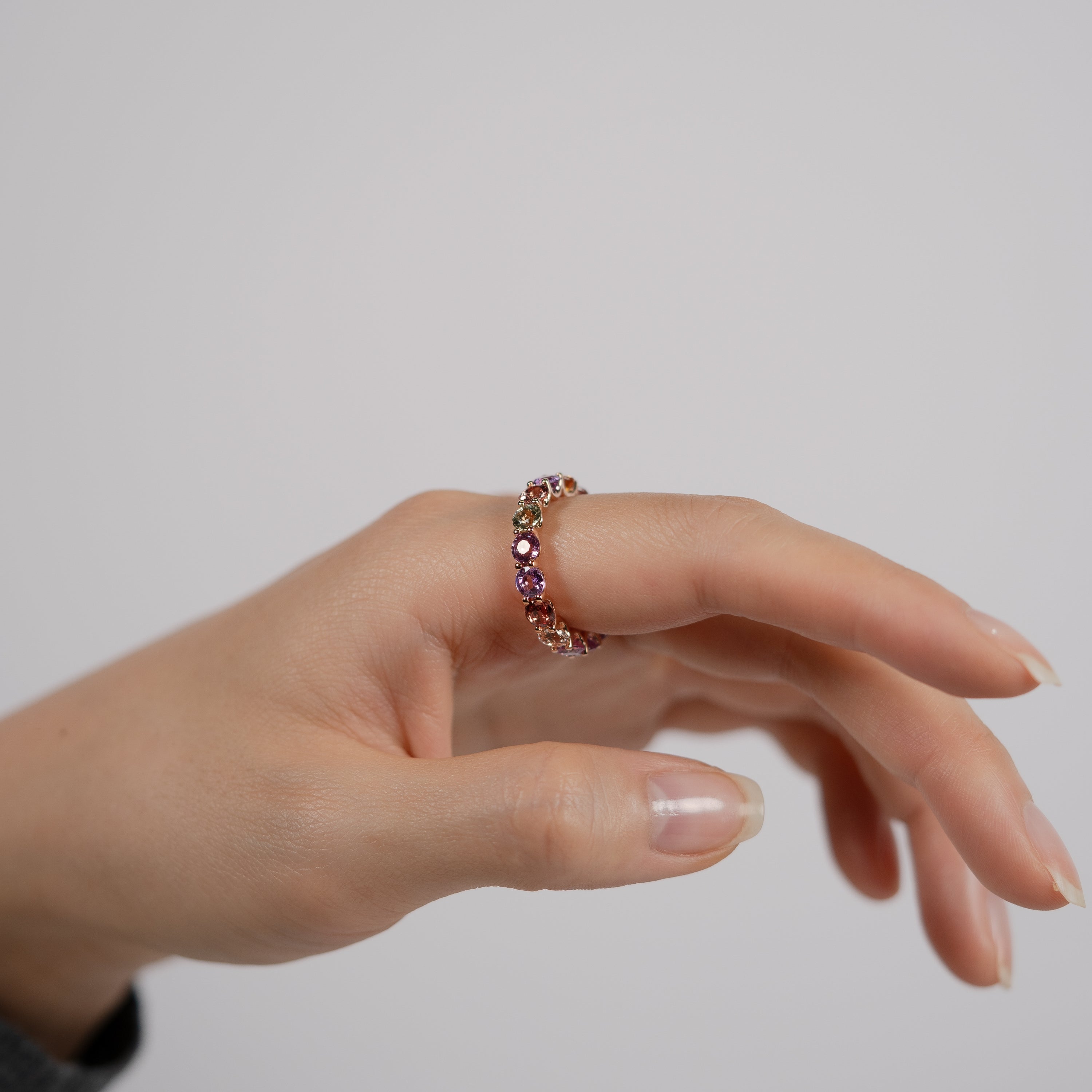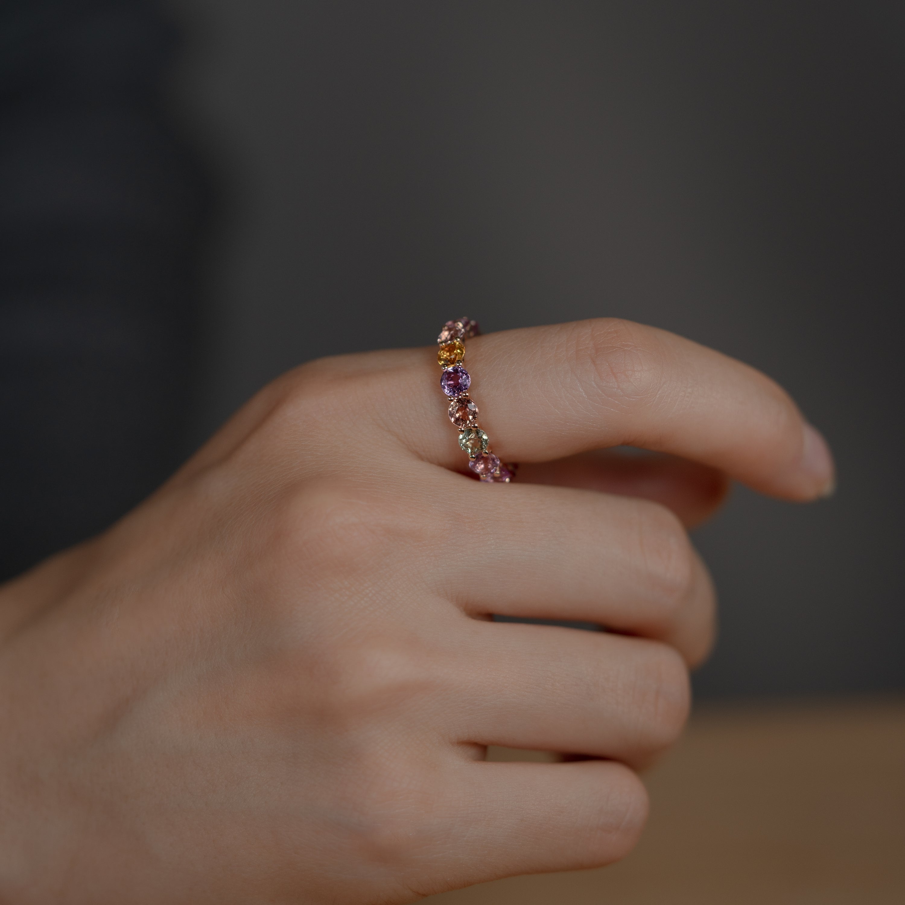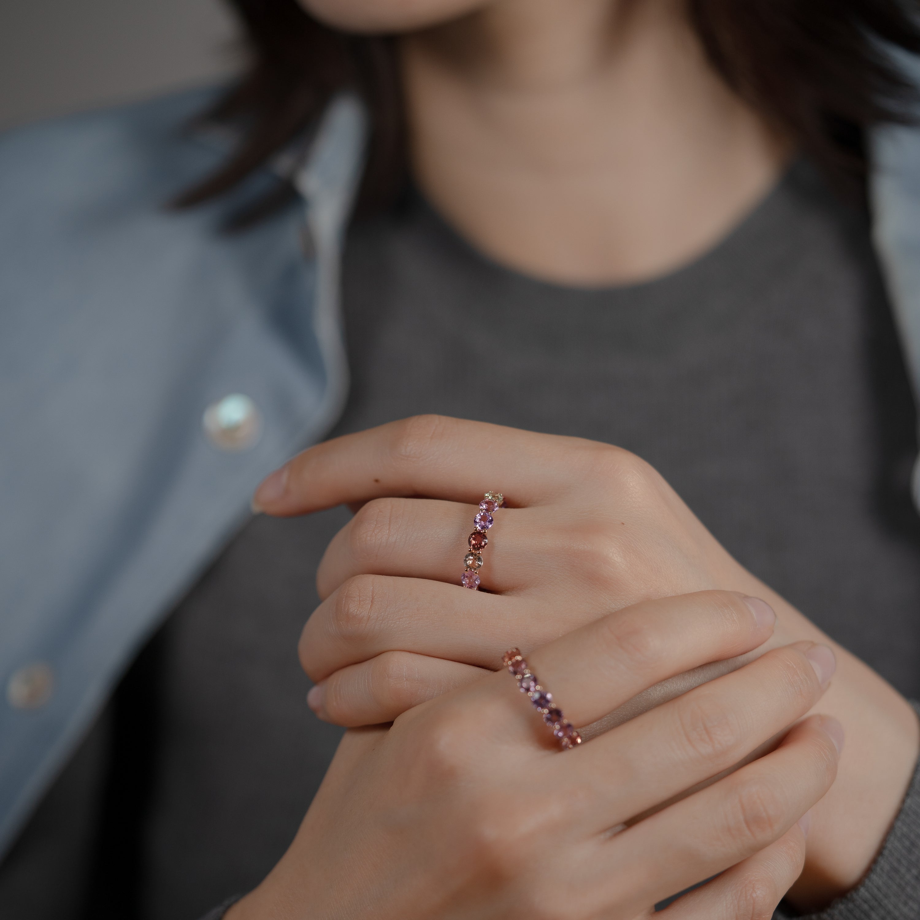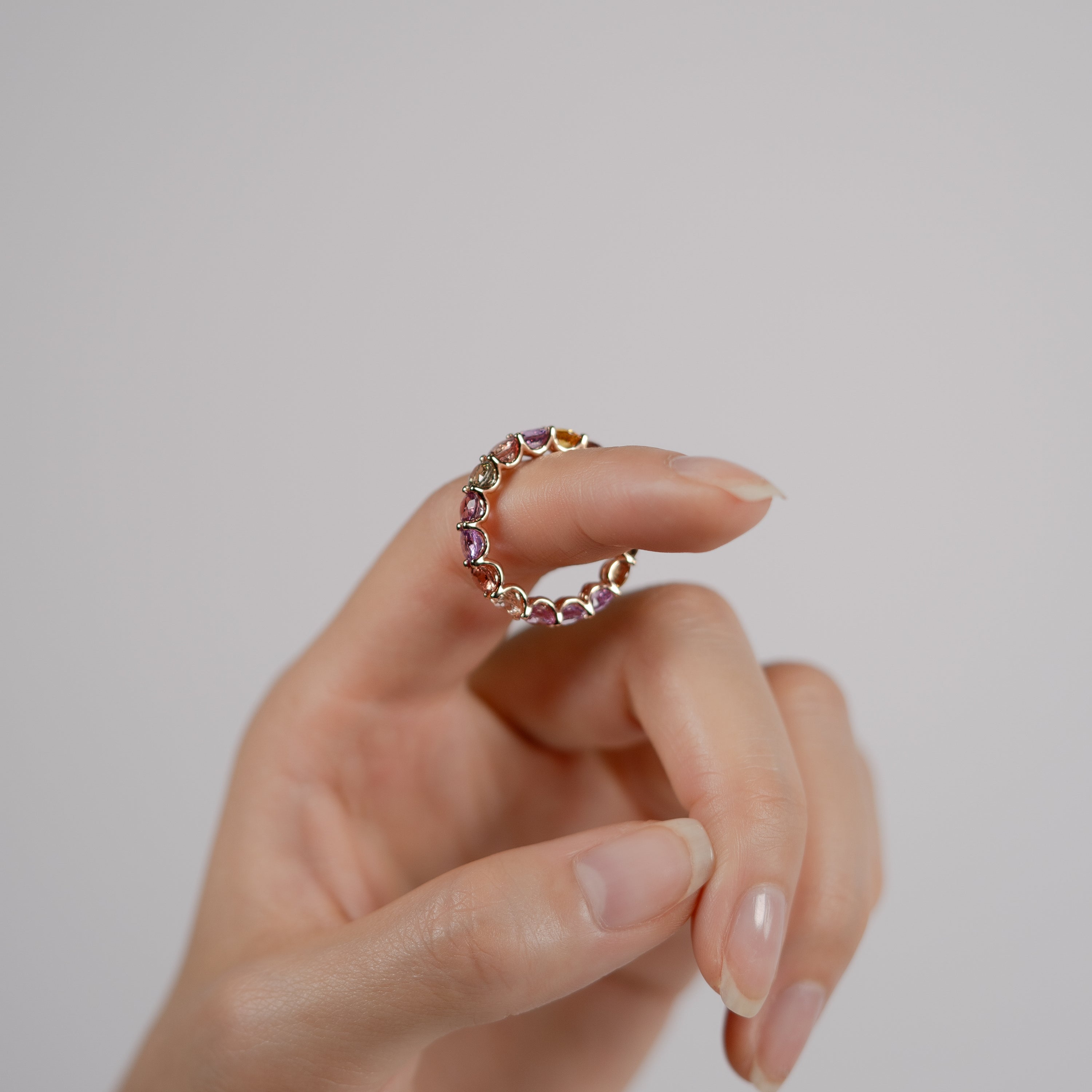 唯一無二の色合いが生む、再現不可能な美。奇跡のような柔らかな彩りで仕立てた、ファンシーサファイアのフルエタニティリング。
