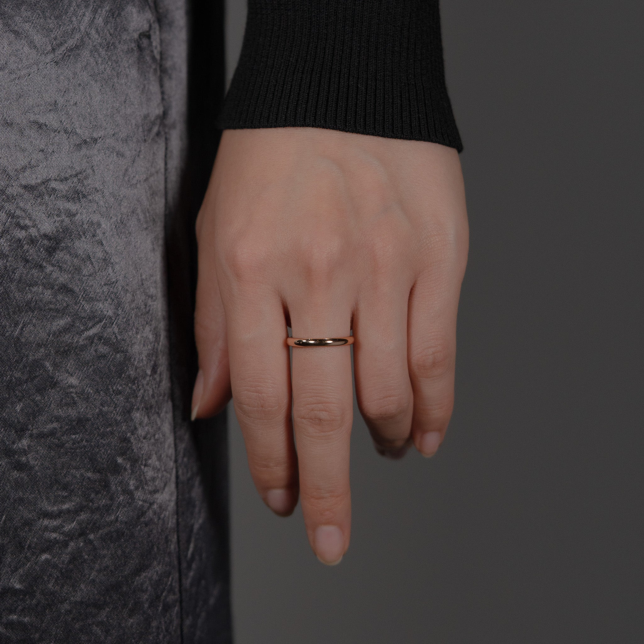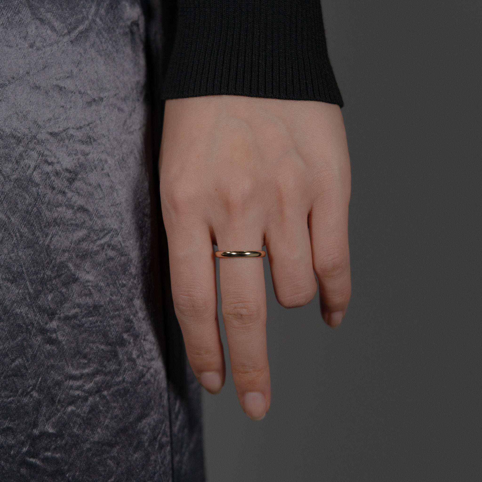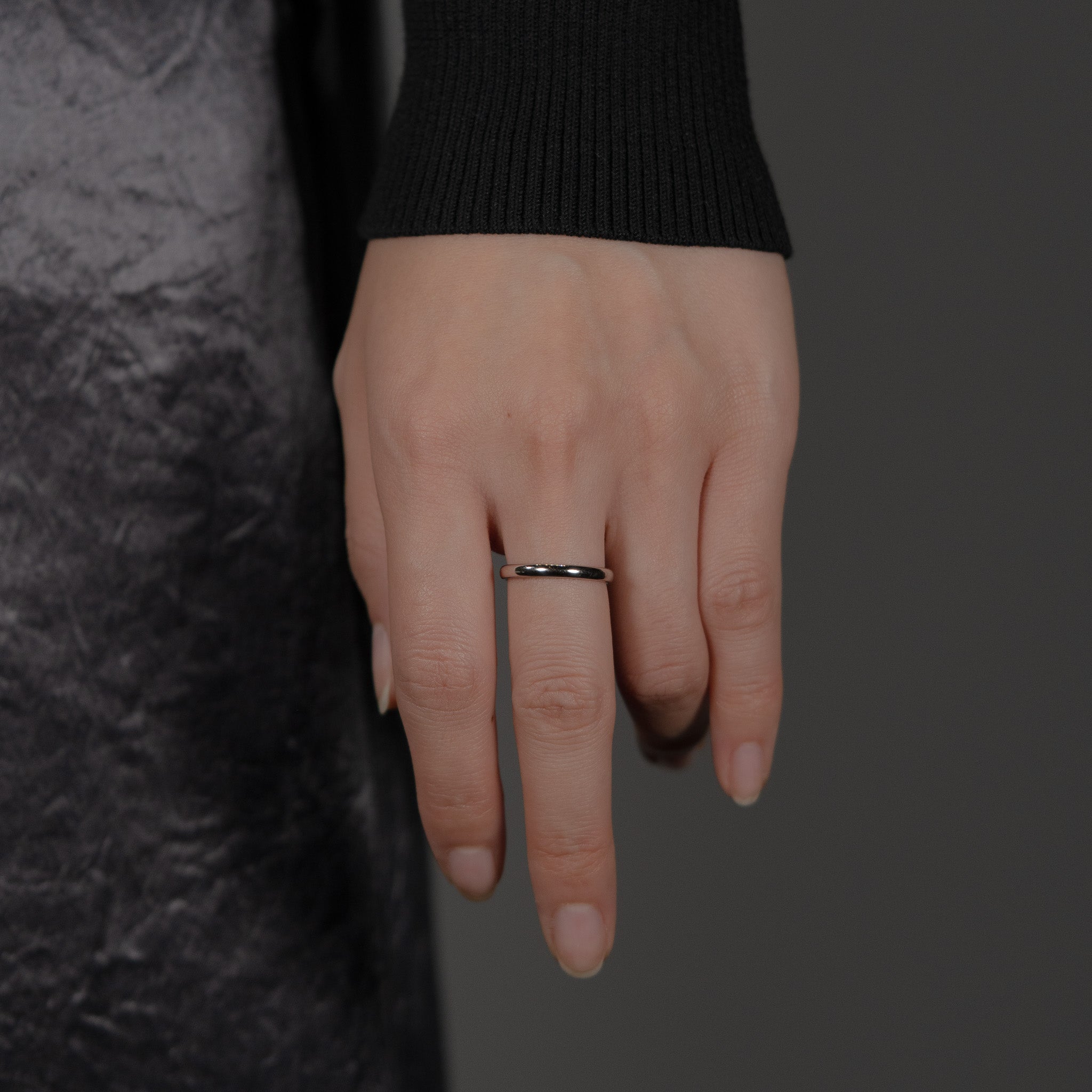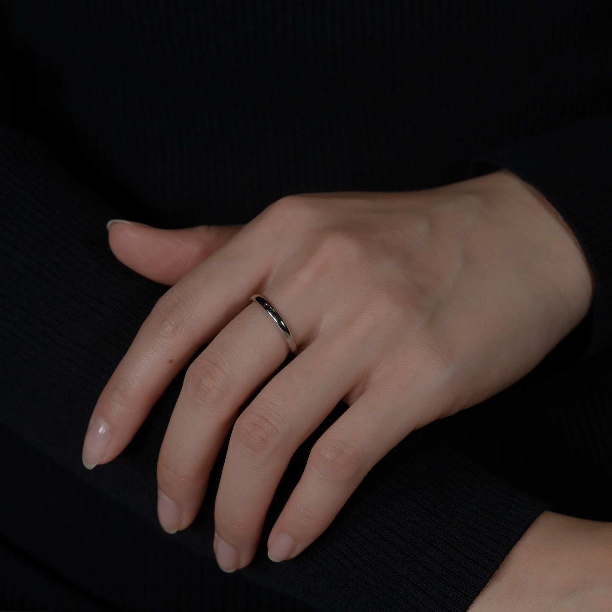 2.5mm幅の艶ありの甲丸リング。丁寧に磨き上げられた美しいシェイプと、内側まで丸く仕上げたデザインで、着け心地と指通りの良さを追求しました。