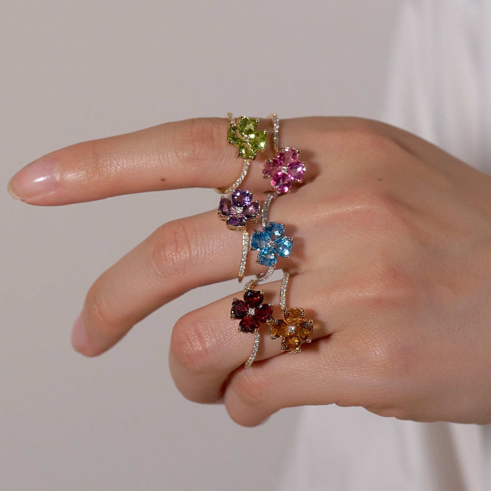 ひとつでも愛らしく、色違いで2本、3本と束ねて楽しむ“ブーケリング”としても人気のアイテムです。お好みのカラーを自由に組み合わせて、あなただけの花束を指元に。