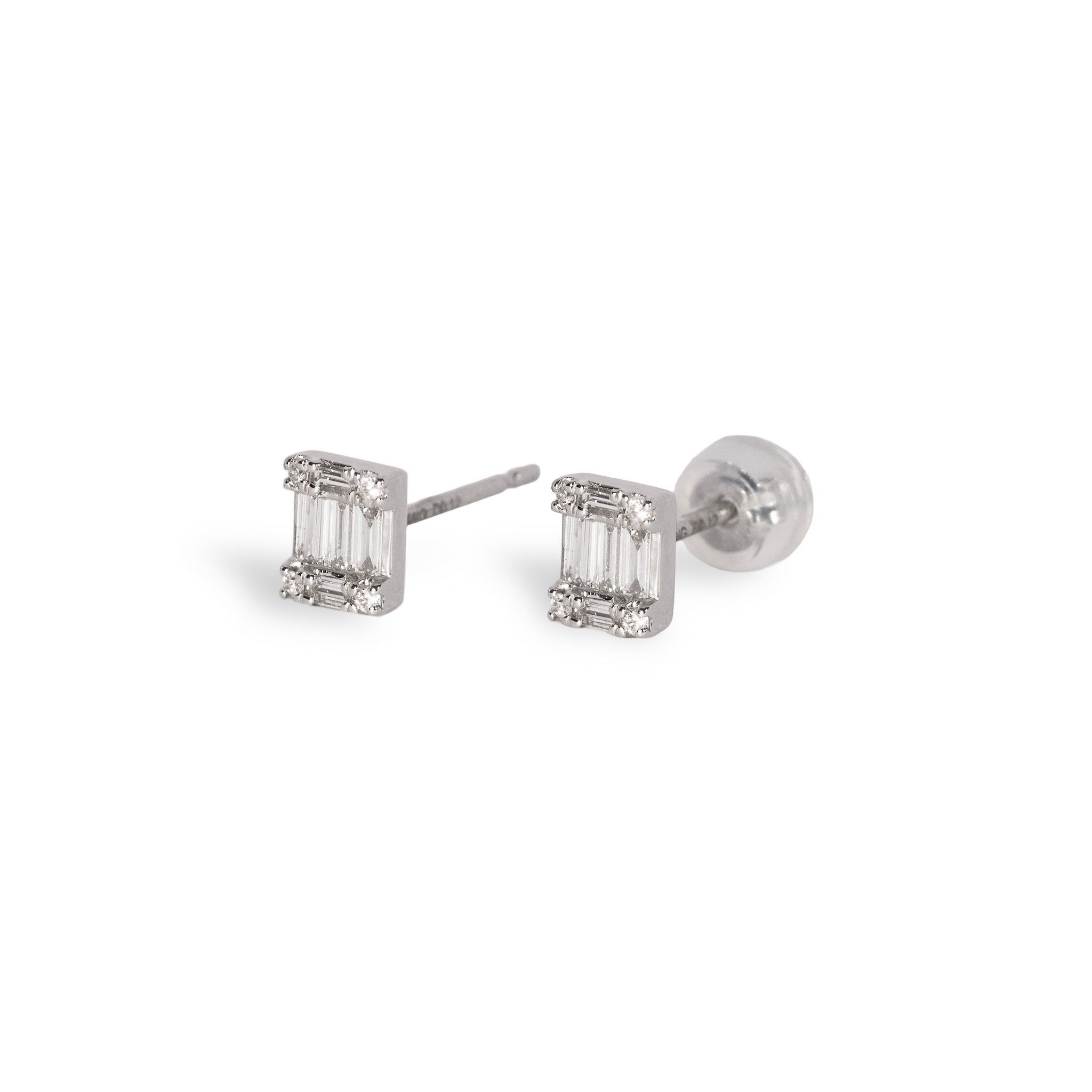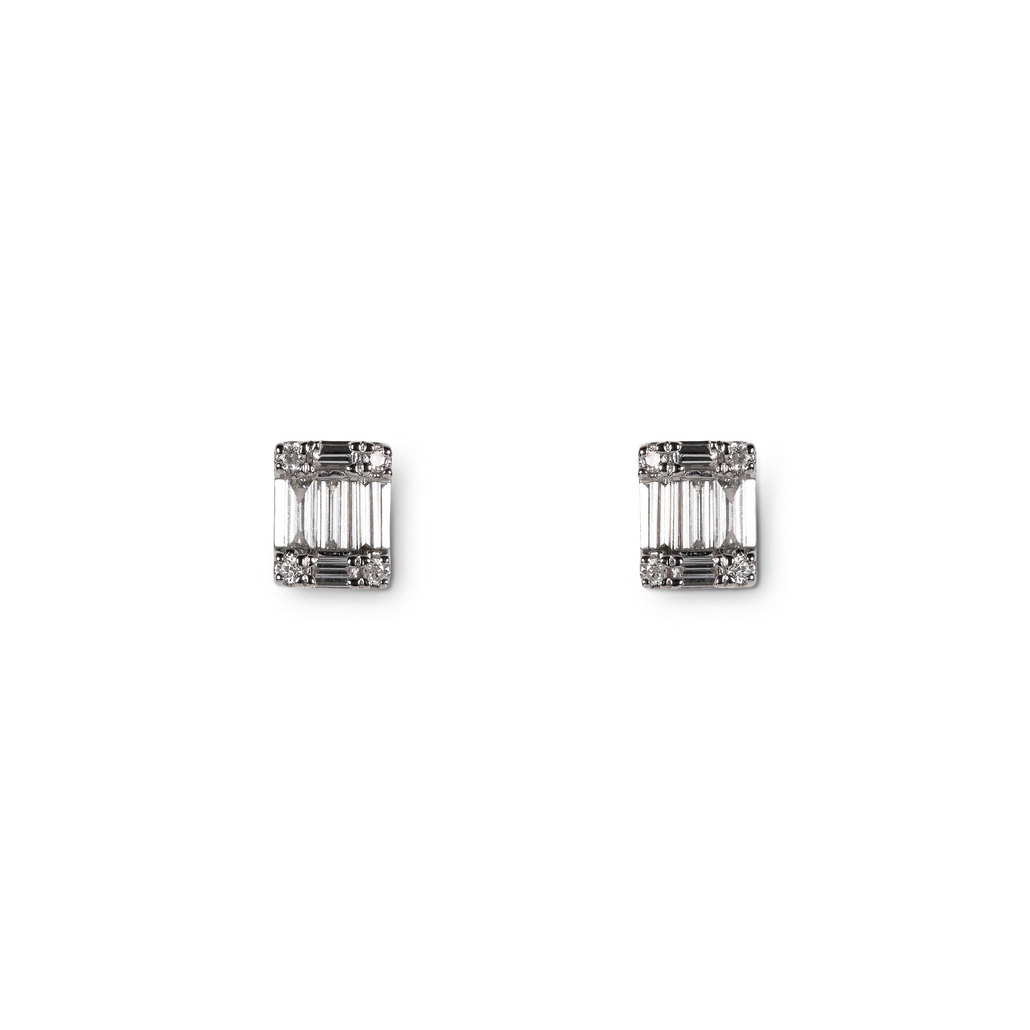 落ち着いた輝きのバゲットカットと、きらめくラウンドカット。対照的なカットが調和した、上品でモダンなピアスです。さりげなくもきちんと感を演出でき、シーンを問わず活躍する万能アイテム。