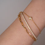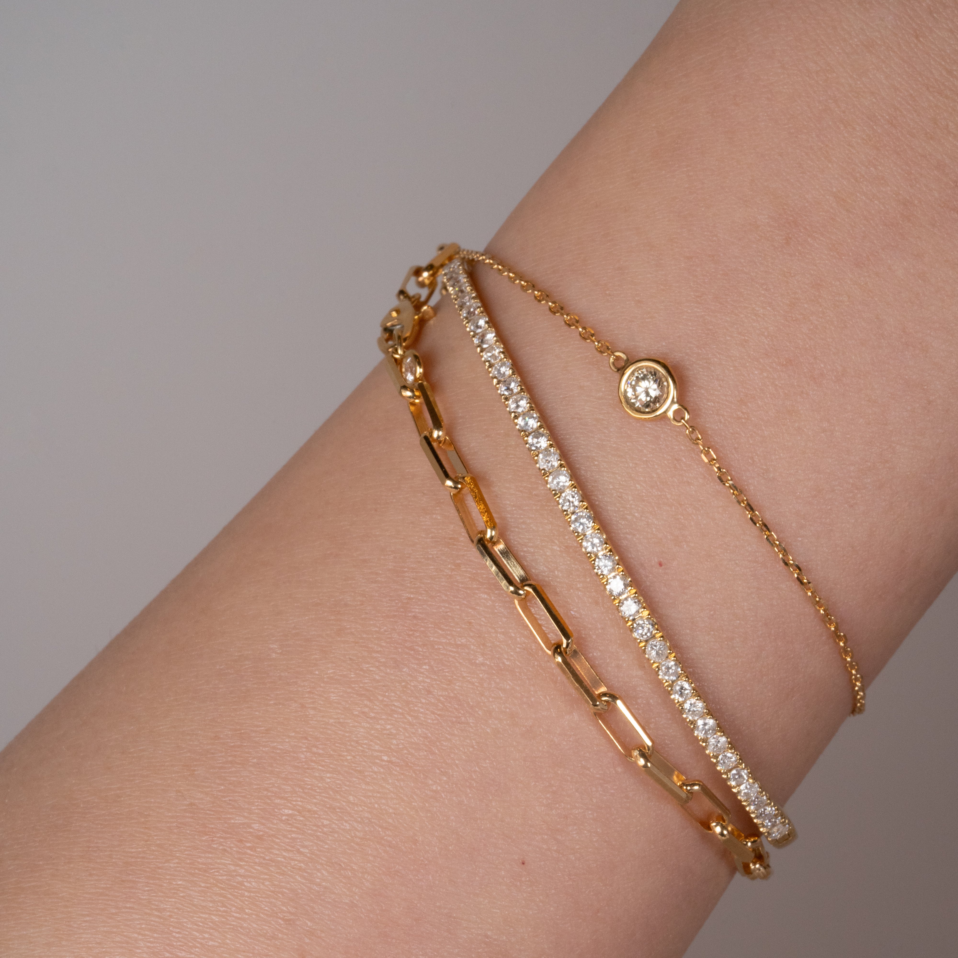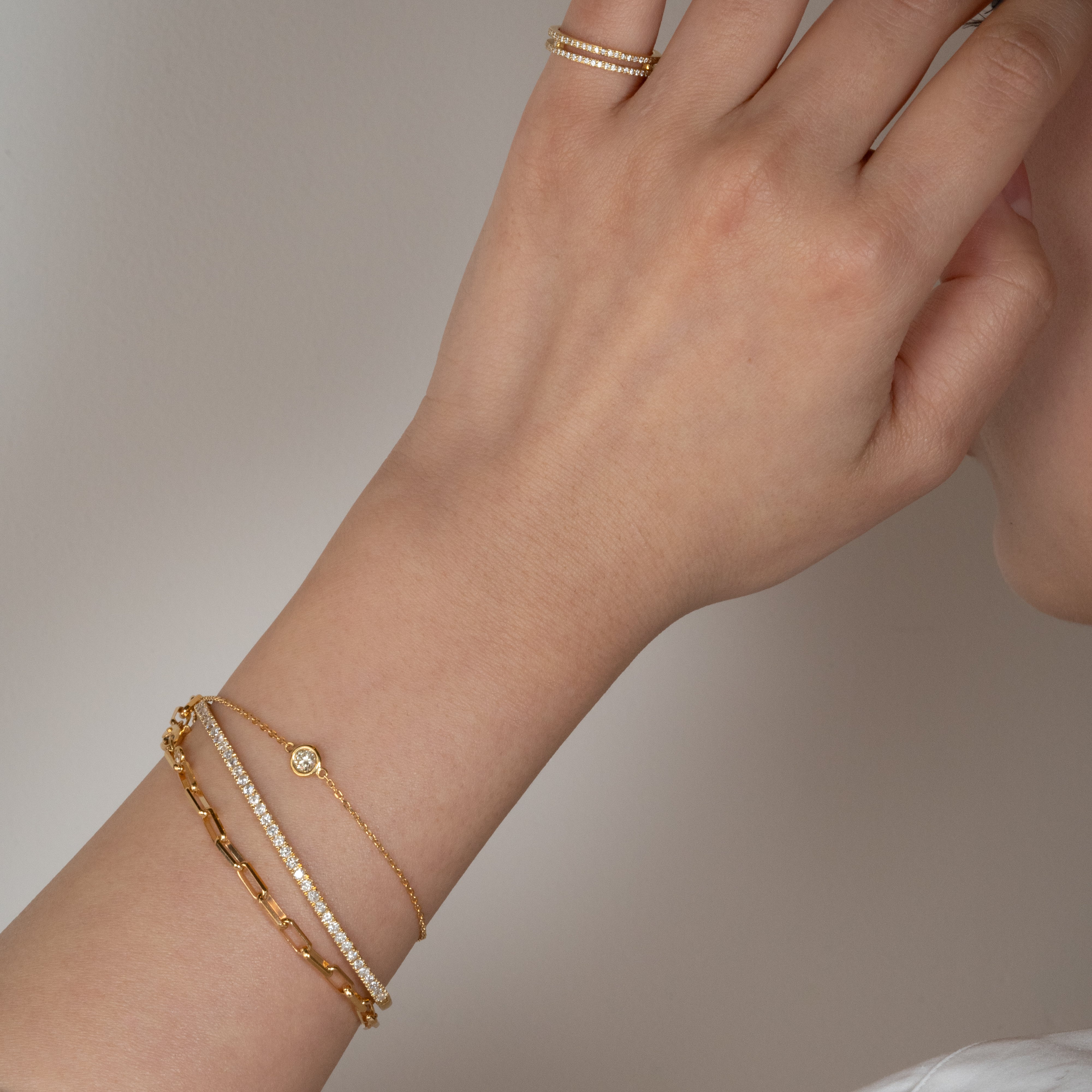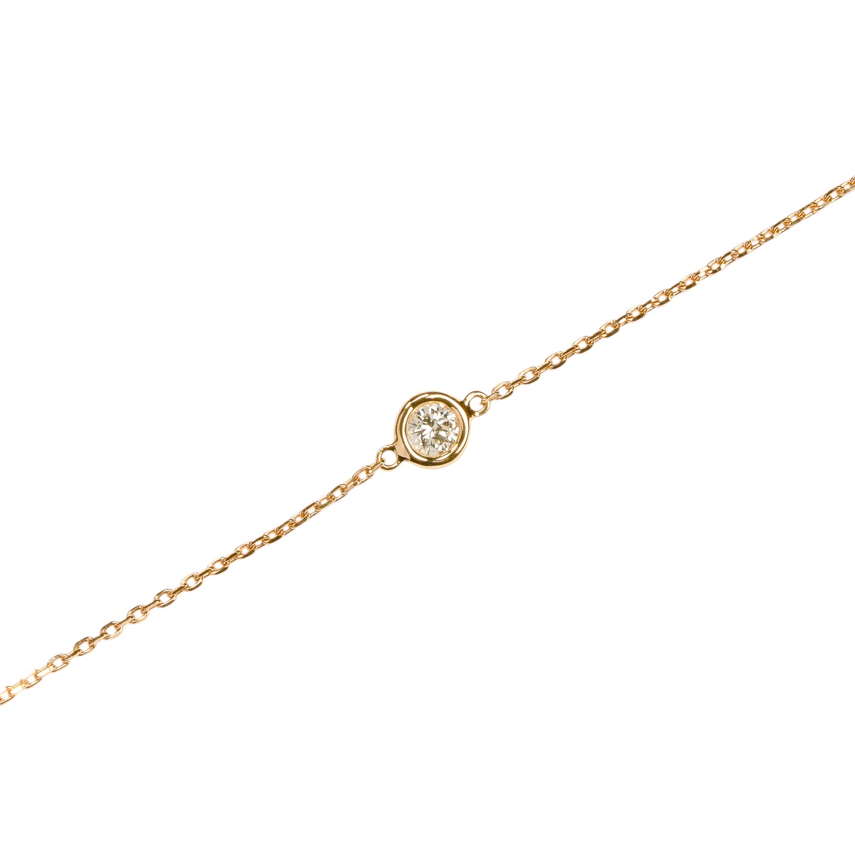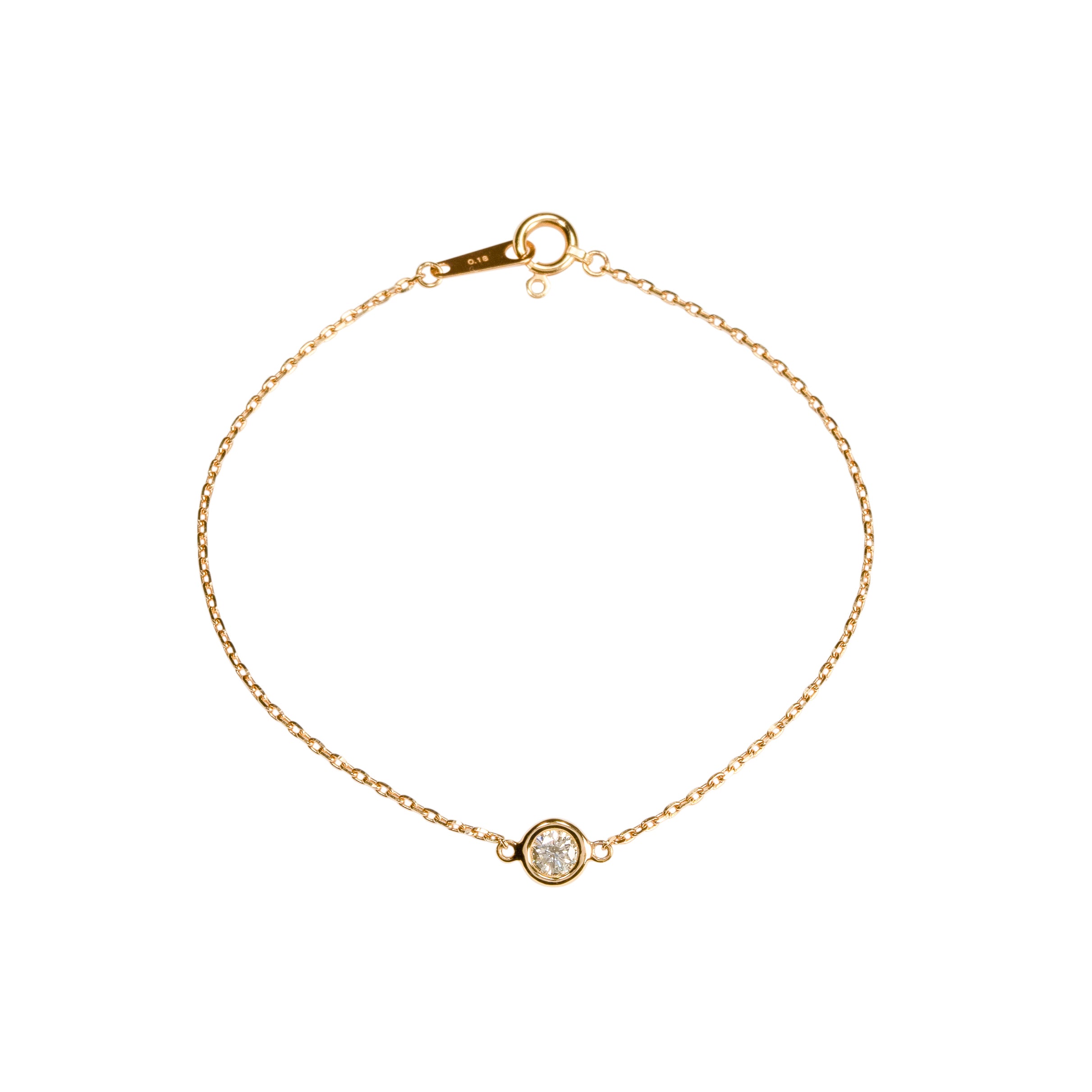 0.15カラットの一粒ダイヤモンドをあしらったブレスレット。タイムレスなデザインで、身につけるだけで装いの格がぐっと上がる、どんなスタイルにもマッチする万能なアイテムです。