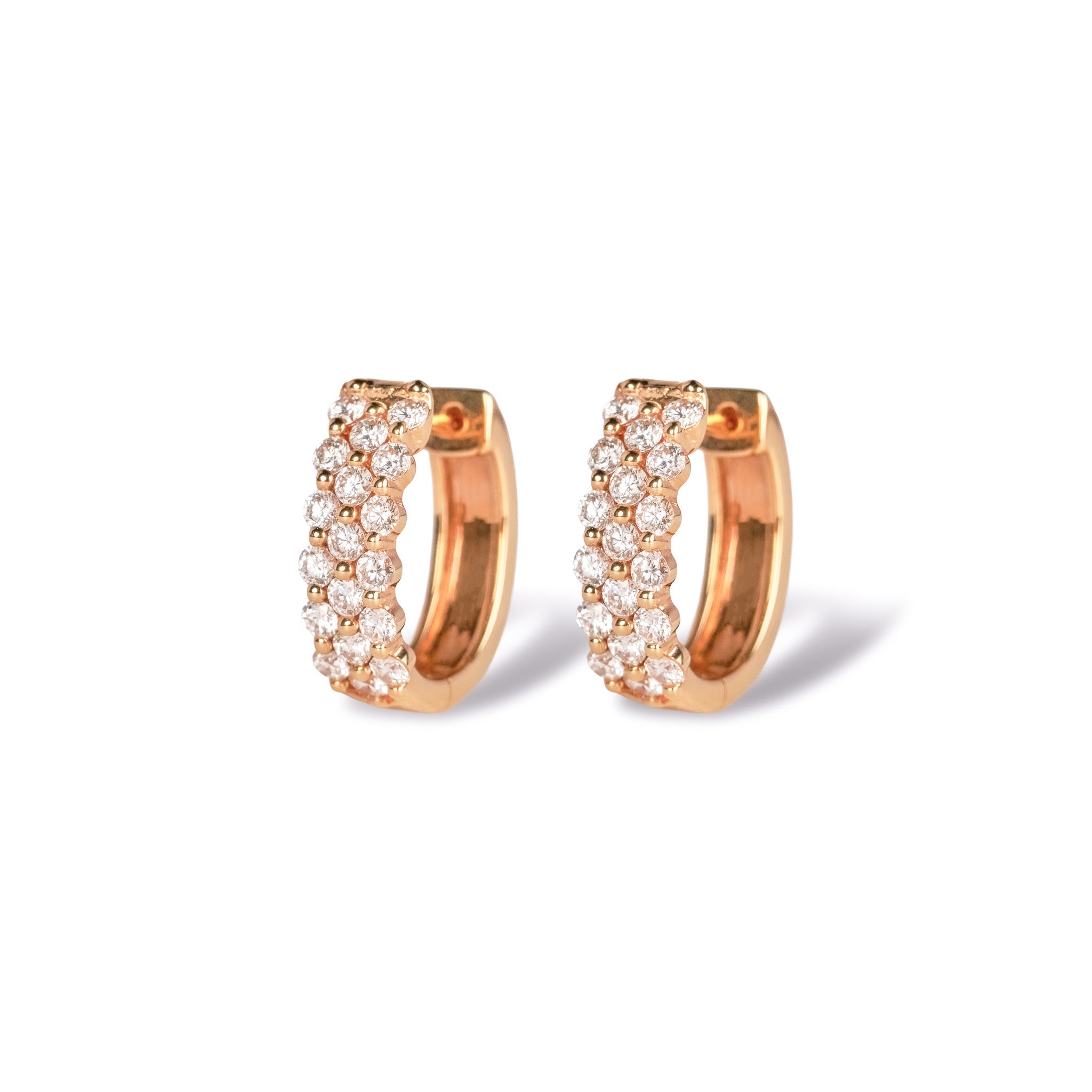 ダイヤモンドの丸みを生かしたレースのようなディテールが美しい、3列パヴェのフープピアス。オーバル型の横顔で、耳の形問わず正面に輝きを見せる設計です。華やかさと繊細さを兼ね備えた、上質なデザイン。