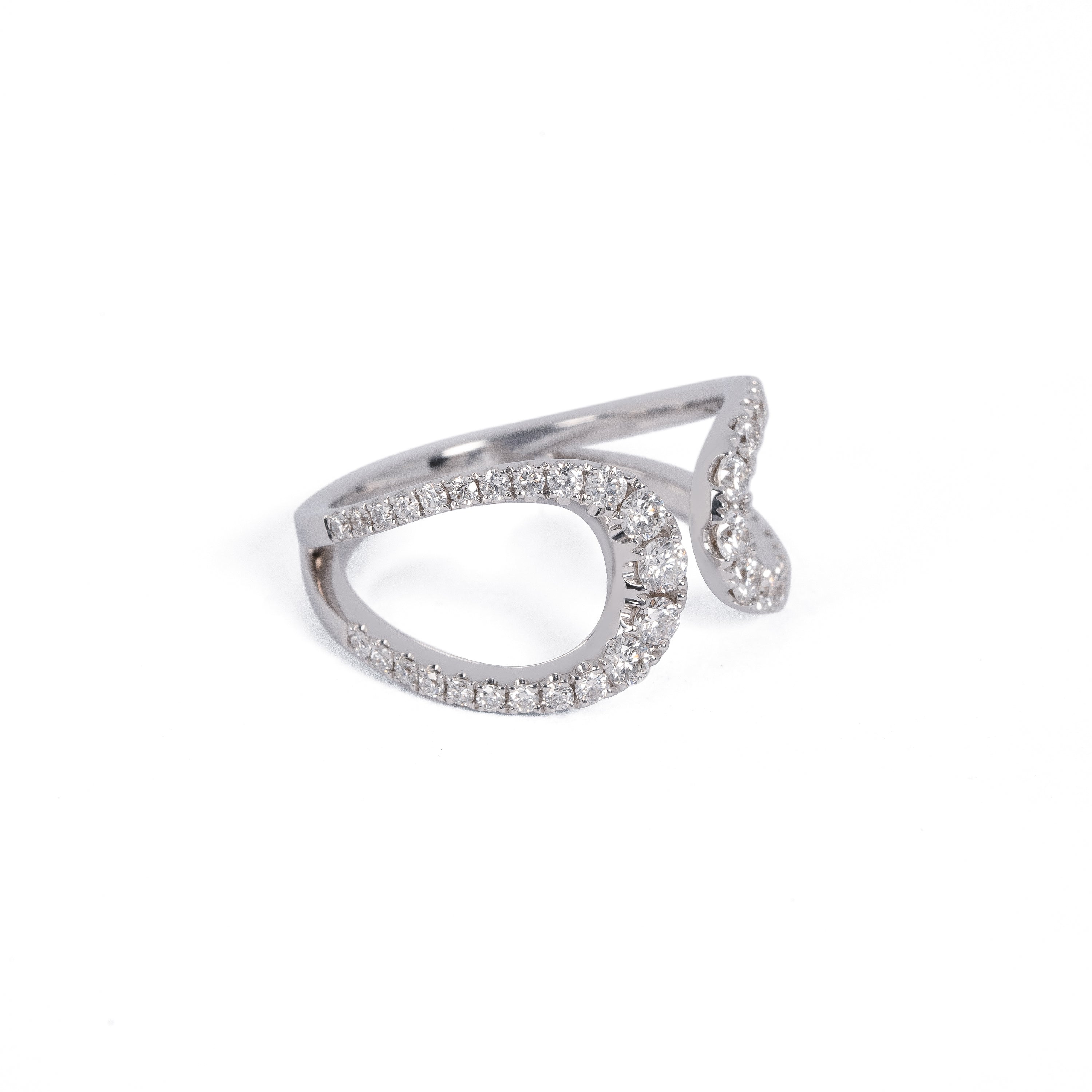 優しく指を包み込む2つの曲線。メレダイヤモンドは大ぶりのものを使用しており、その強いきらめきも楽しんでいただきたいリングです。