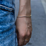 最もシンプルで王道を楽しみたい方に、特におすすめのアイテムです。太すぎず細すぎず、まさに完璧なサイズ感を実現するために何度も試作を重ねました。時計やバングル、他のブレスレットとの重ね着けがしやすく、リングとのバランスも考慮した抜群のボリュームです。シンプルさの中に宿る永遠の輝きを感じながら、毎日を特別なものにしてくれる一品です。