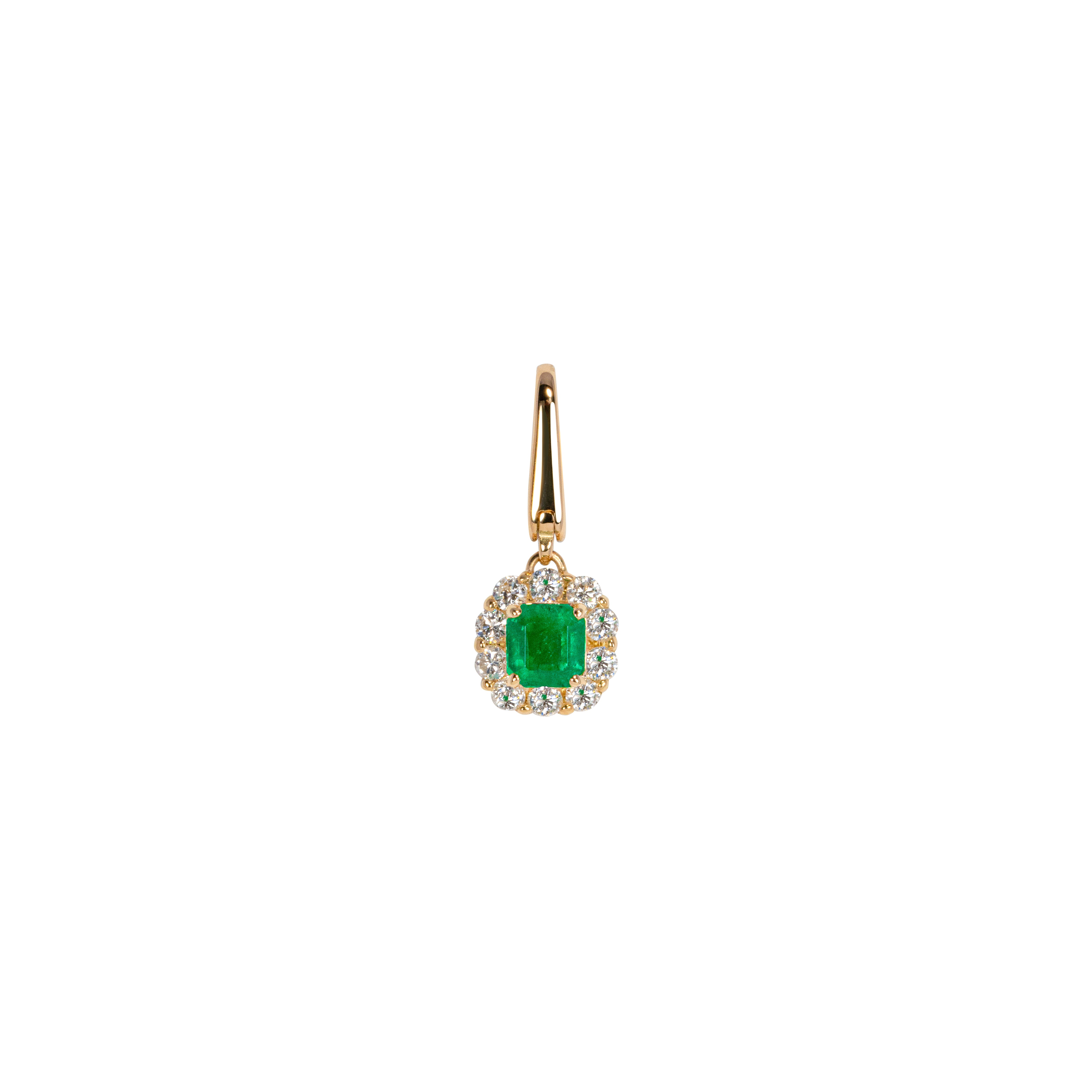 鮮やかなネオンカラーのエメラルドを華やかに彩ったチャーム。バレリーナのチュチュを思わせるダイヤモンドの絶妙な角度が、シンプルながら他にはない気品を引き立てます。開閉式の金具により、さまざまなチェーンと組み合わせてお楽しみいただけます。
