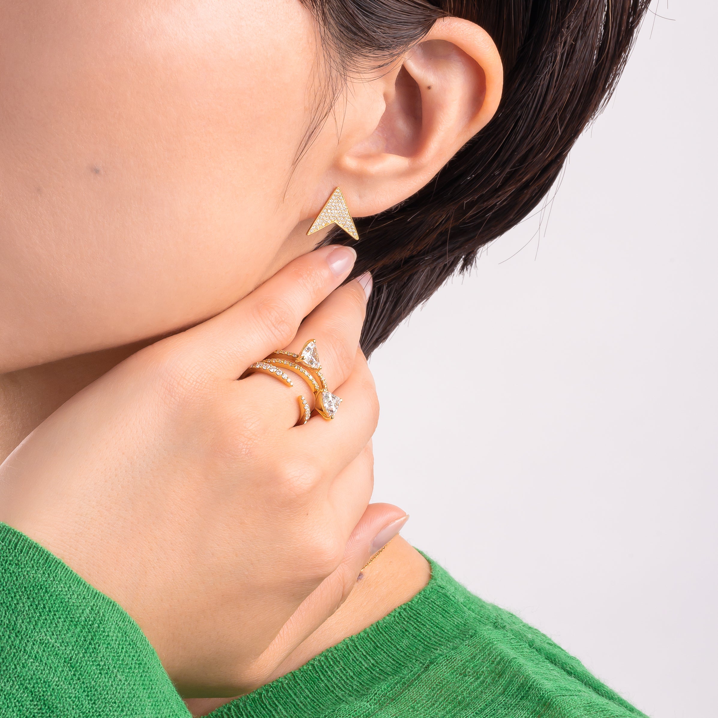 シンプルでフラットなモチーフにメレダイヤモンドを丁寧に敷き詰めたコレクション。Tシャツやデニムなど、カジュアルな装いを上質にクラスアップしてくれるジュエリーです。