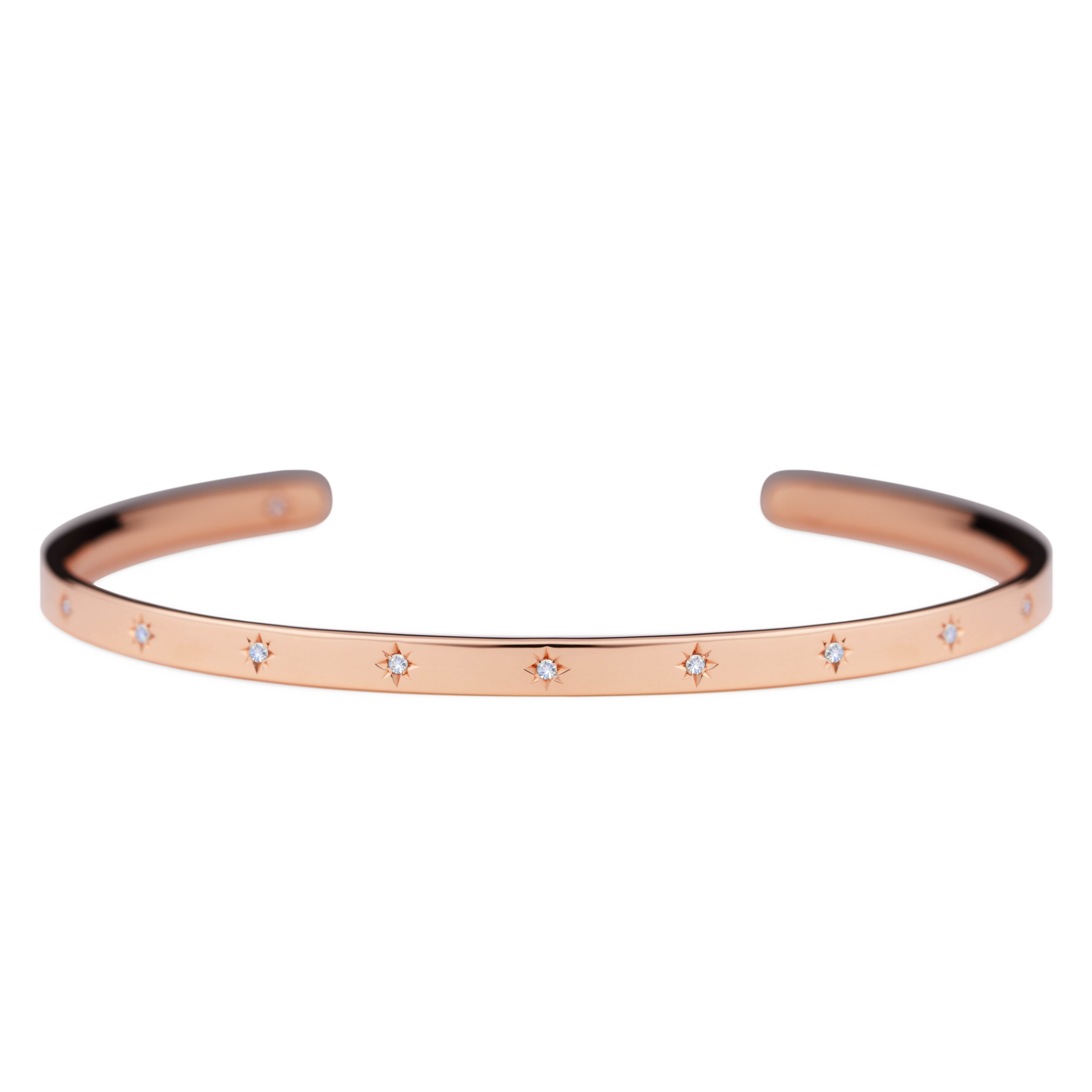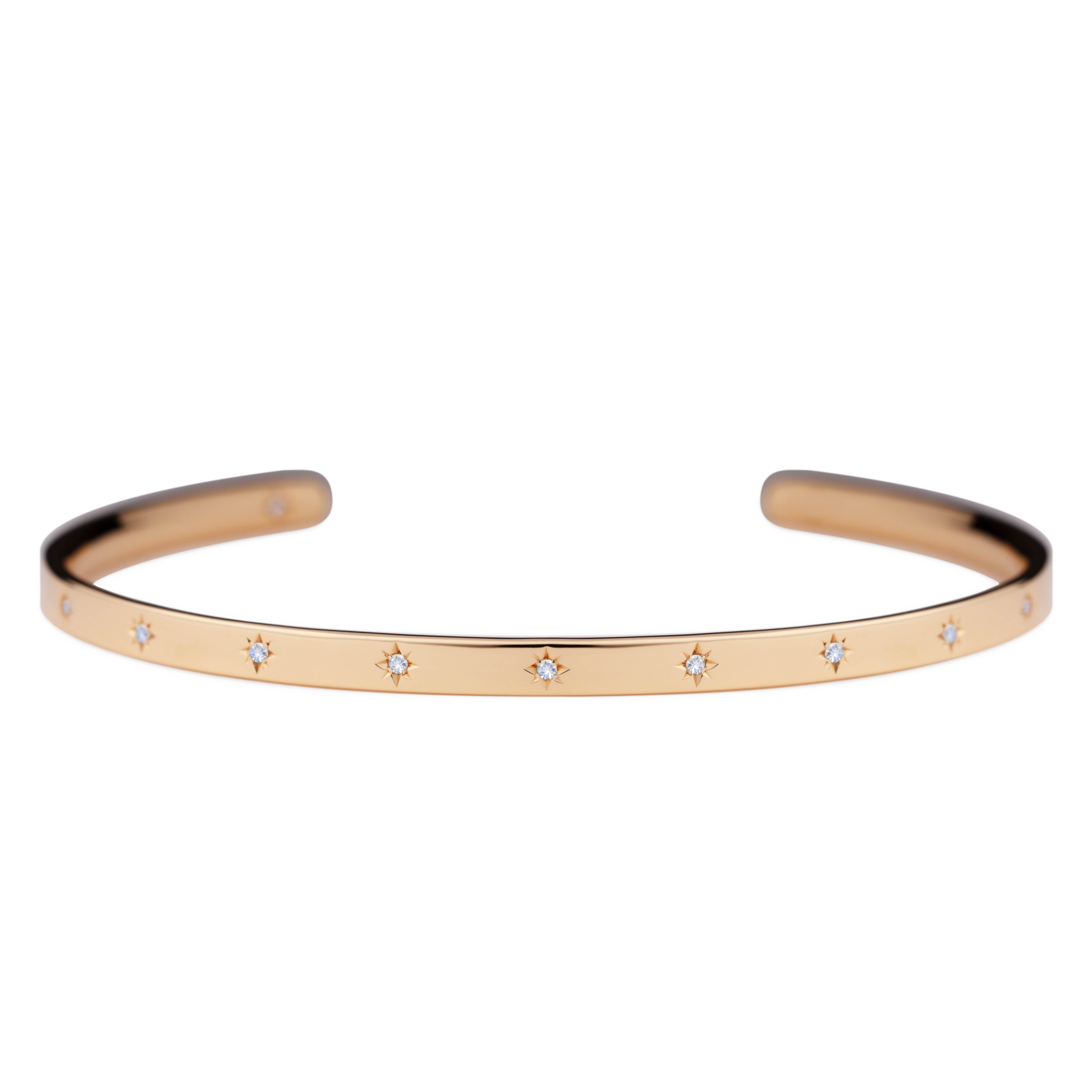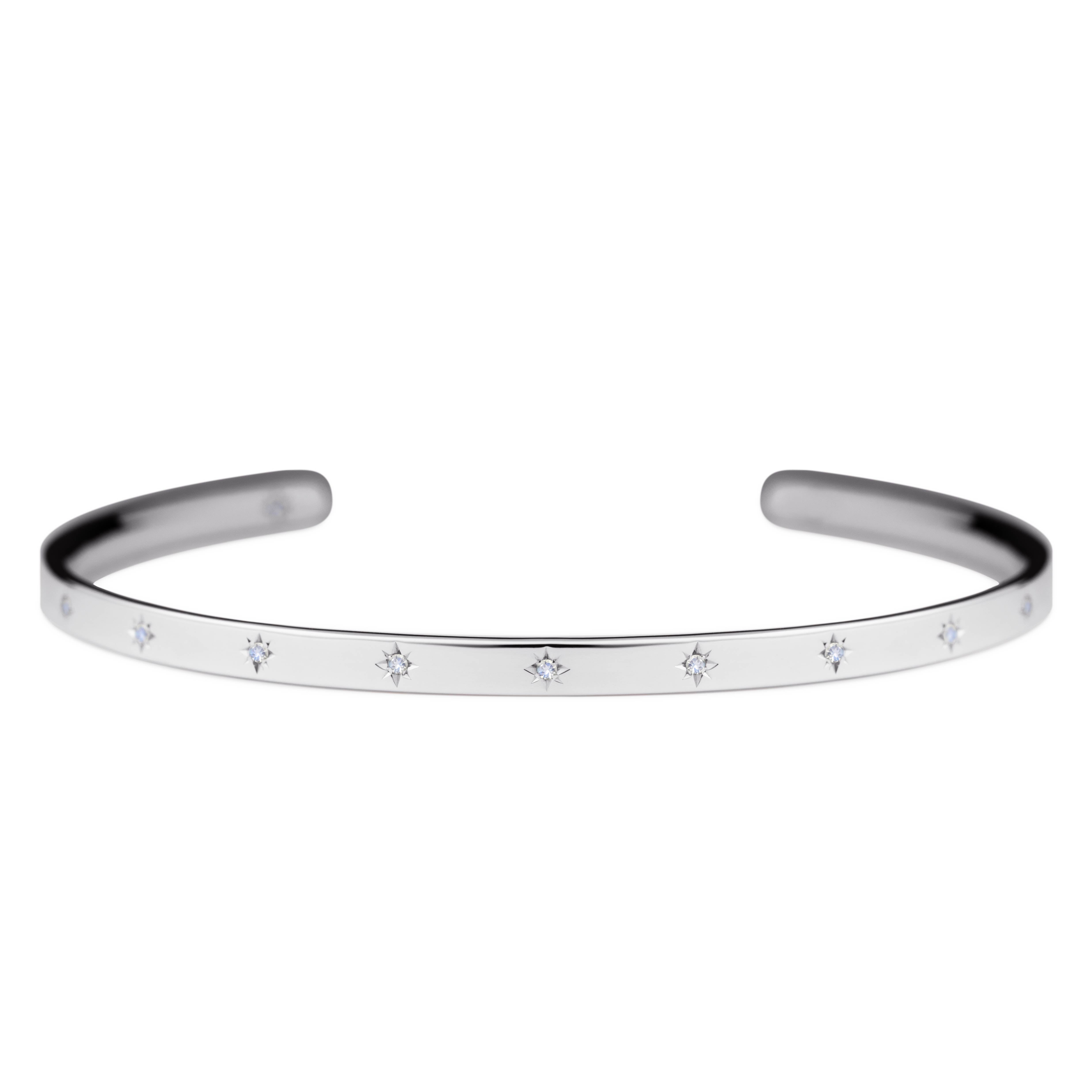 腕に自然に馴染むオーバル(楕円)形状のオープンバングル。6月の誕生石であるムーンストーンが、星型に手彫りで丁寧に留められています。表面には11の星が輝き、バングルの内側には1つの星がそっと隠れ、身に着ける方を優しく守ります。自分自身を大切にするためのお守りとして。あるいは、パートナーとお揃いで選ぶ、大切な約束の証として。12の星が、どんな日常にも優しく寄り添い、あなたのお手元をそっと輝かせます。オープンバングルは、留め具なしで手首に滑らせるだけで簡単に装着できる実用性と、ユニセックスで楽しめるシンプルなデザインも魅力。