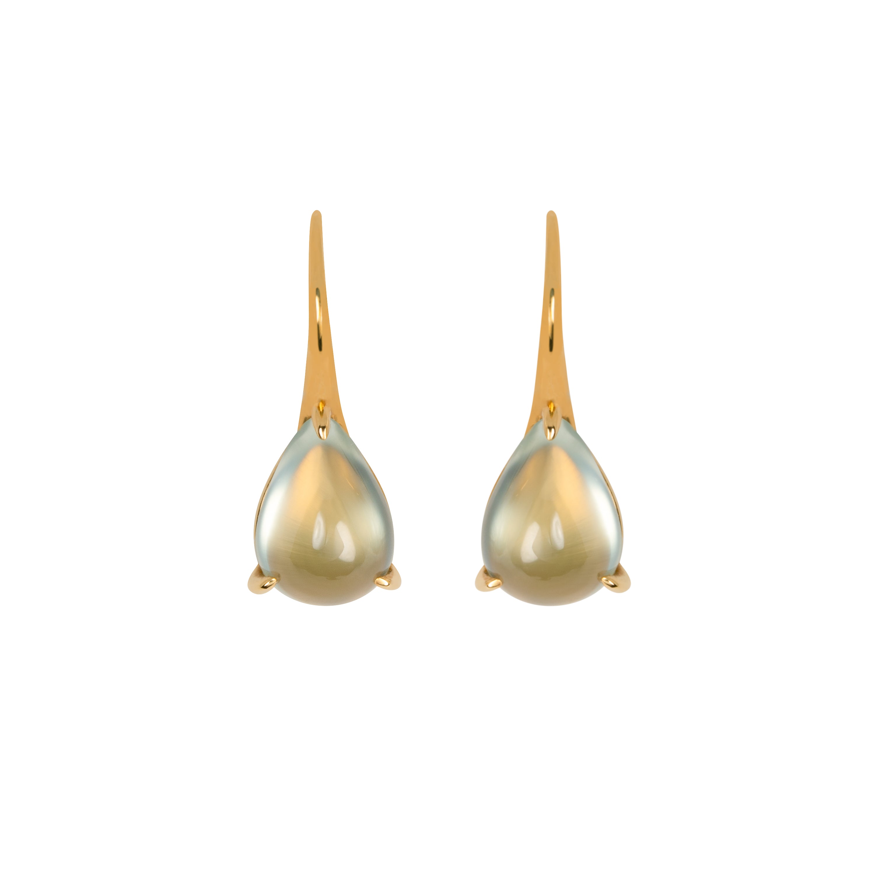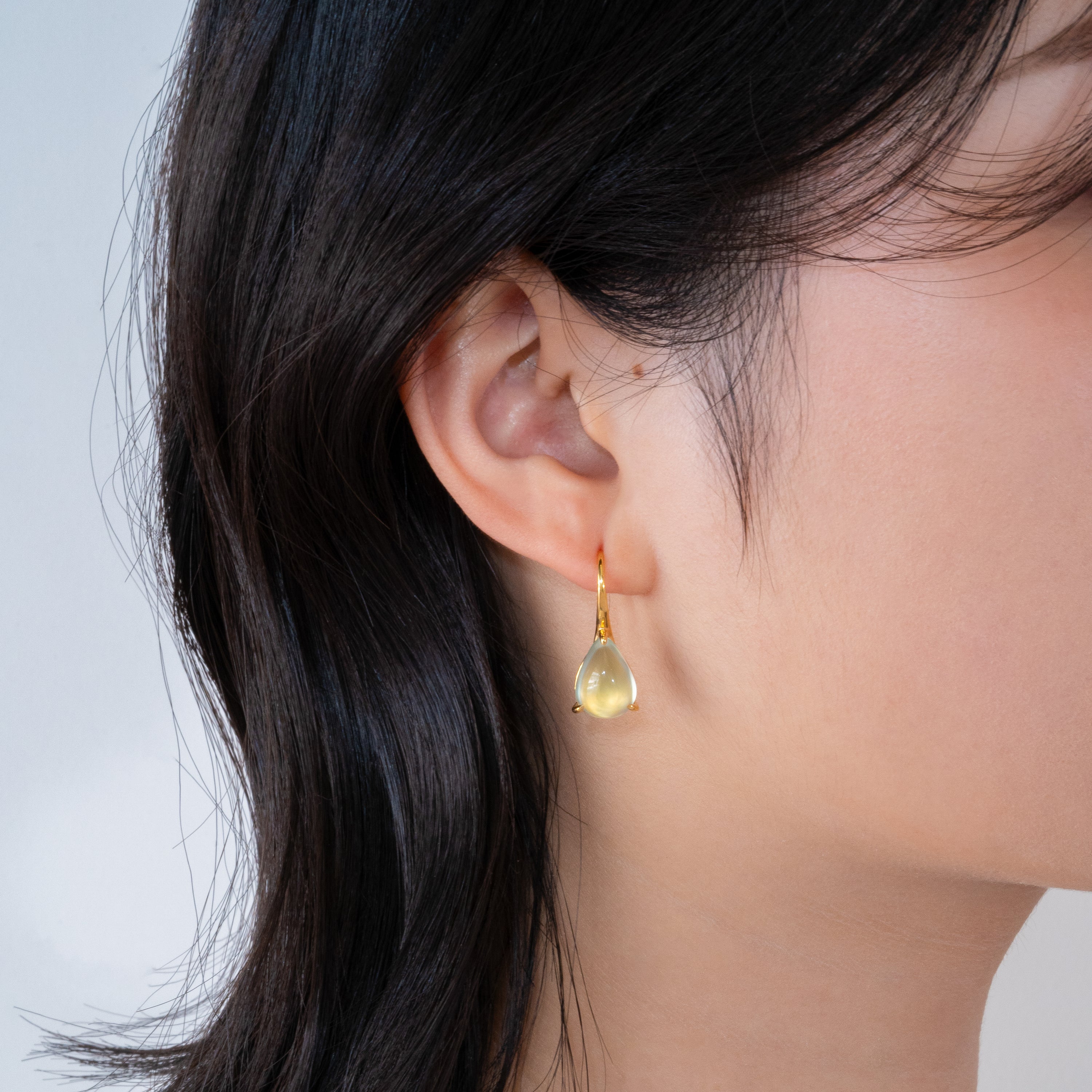 たっぷりとした高さのあるカボションカットのプレーナイト。眺めているとまるで深い湖の中を覗き込んでいるような感覚を覚えるのは、宝石の透明感を最大限引き出すために440が独自開発した特殊な石留めの技法によるものです。 石座からフックの先端までの曲線が美しく、顔周りをエレガントに彩ります。ペアでのお作りです。