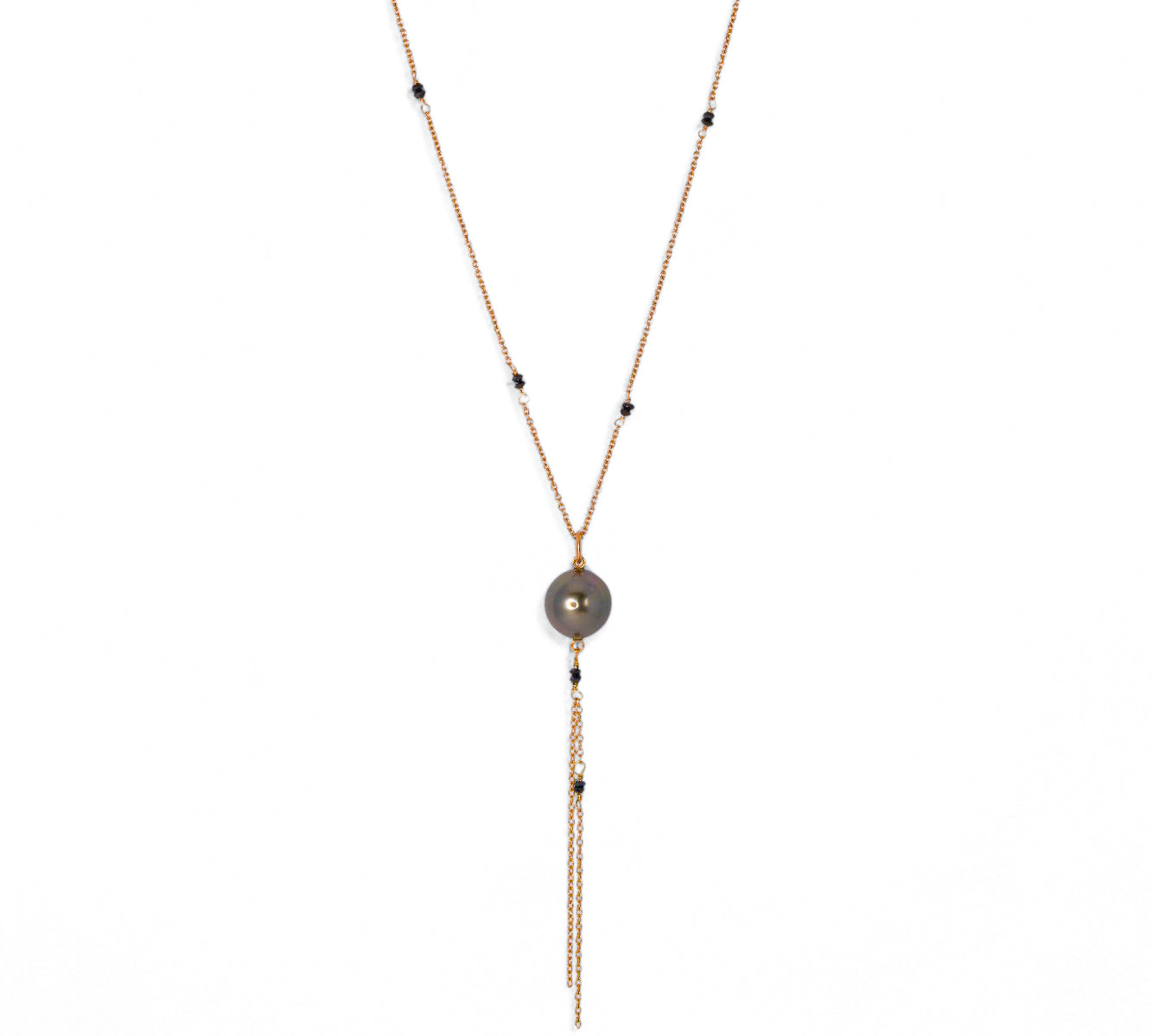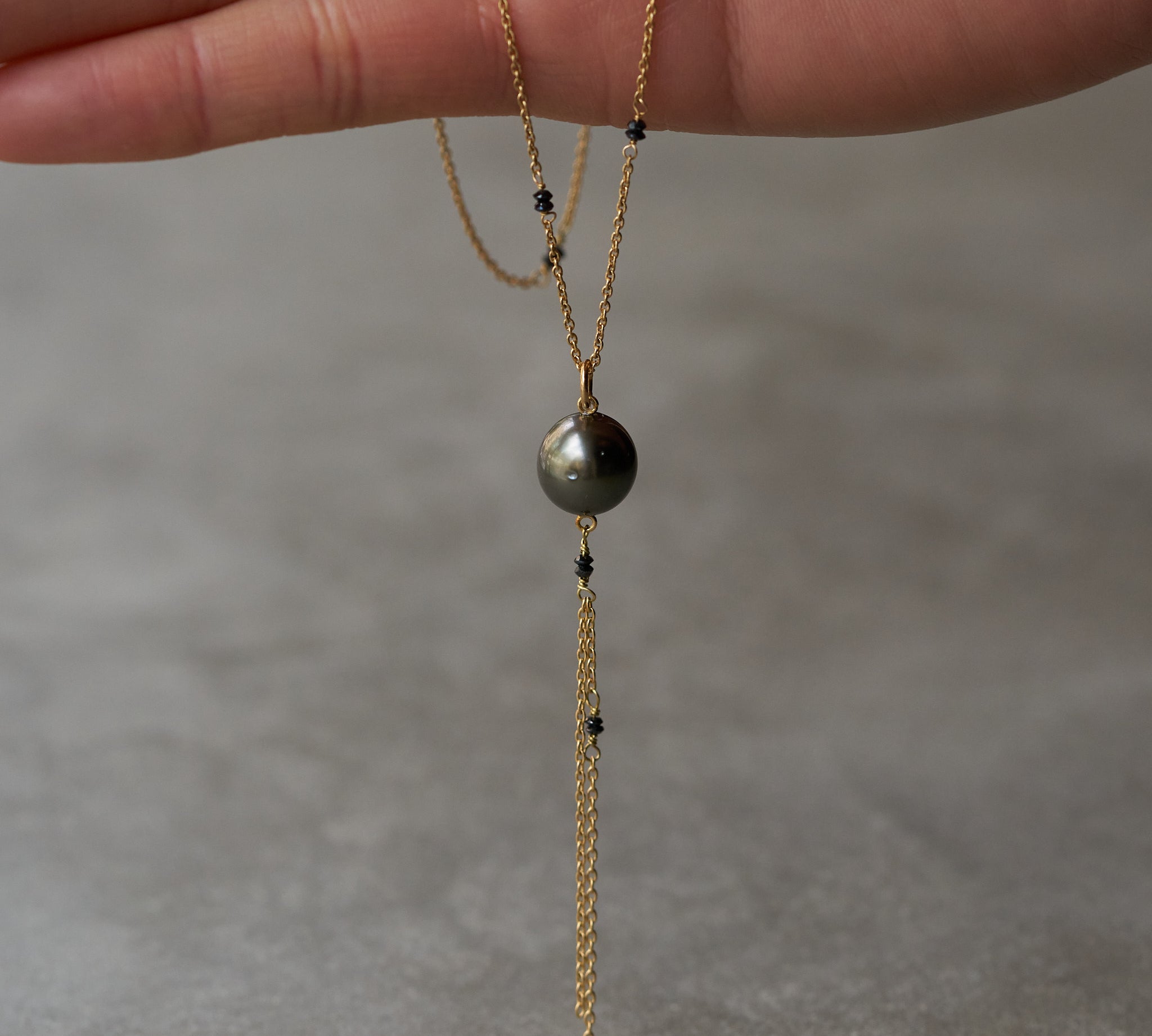ParVert - 黒蝶真珠、ブラックダイヤモンド タッセル ネックレス