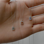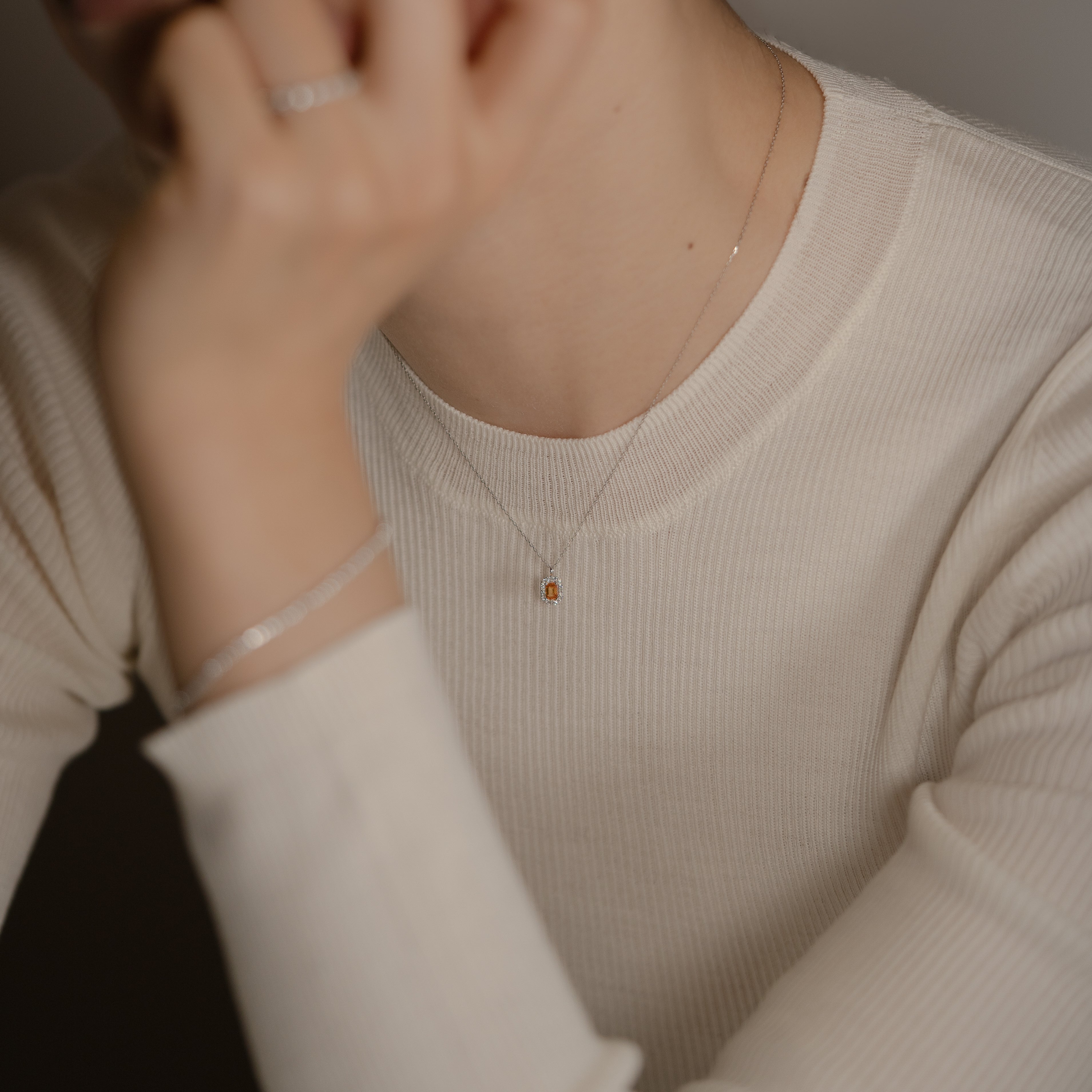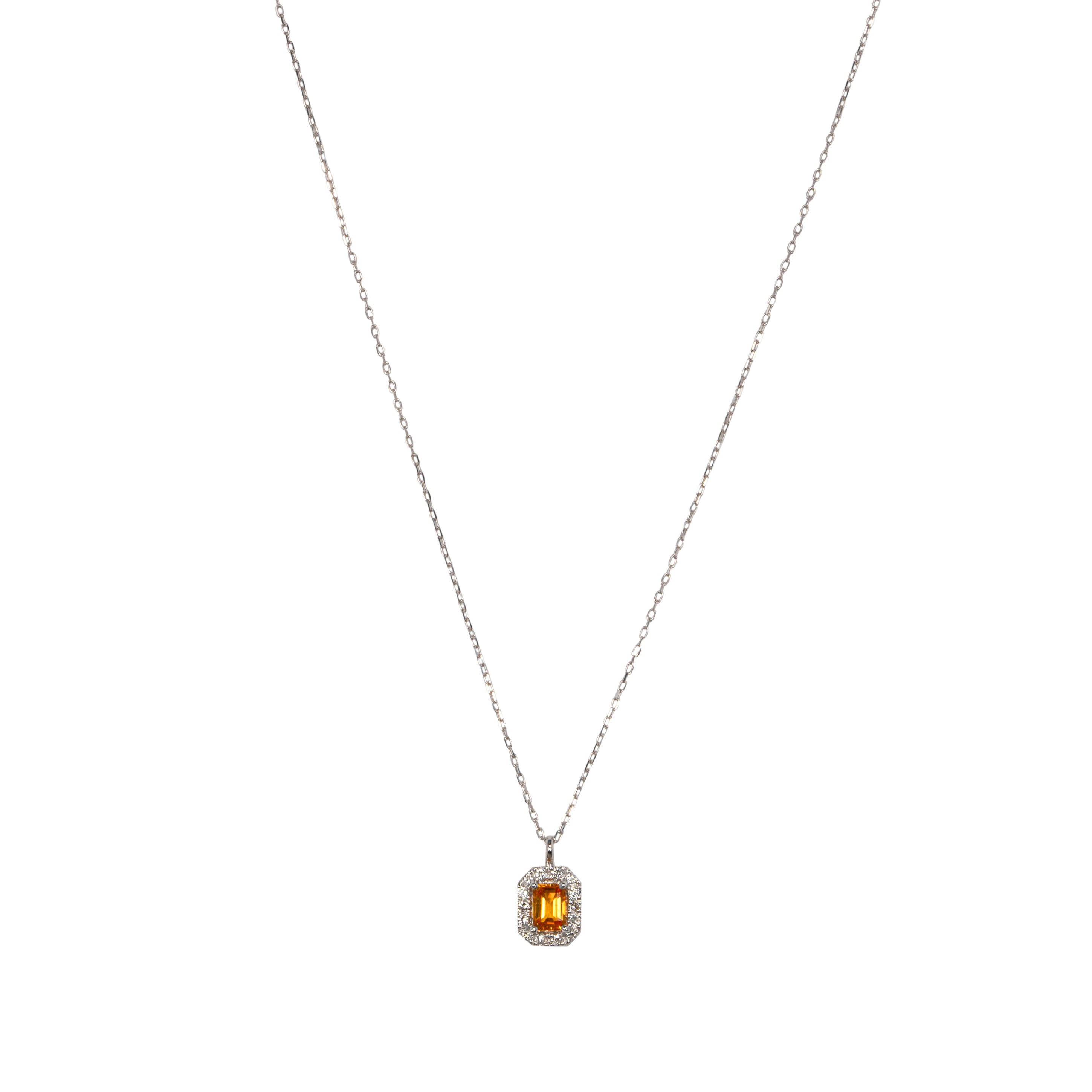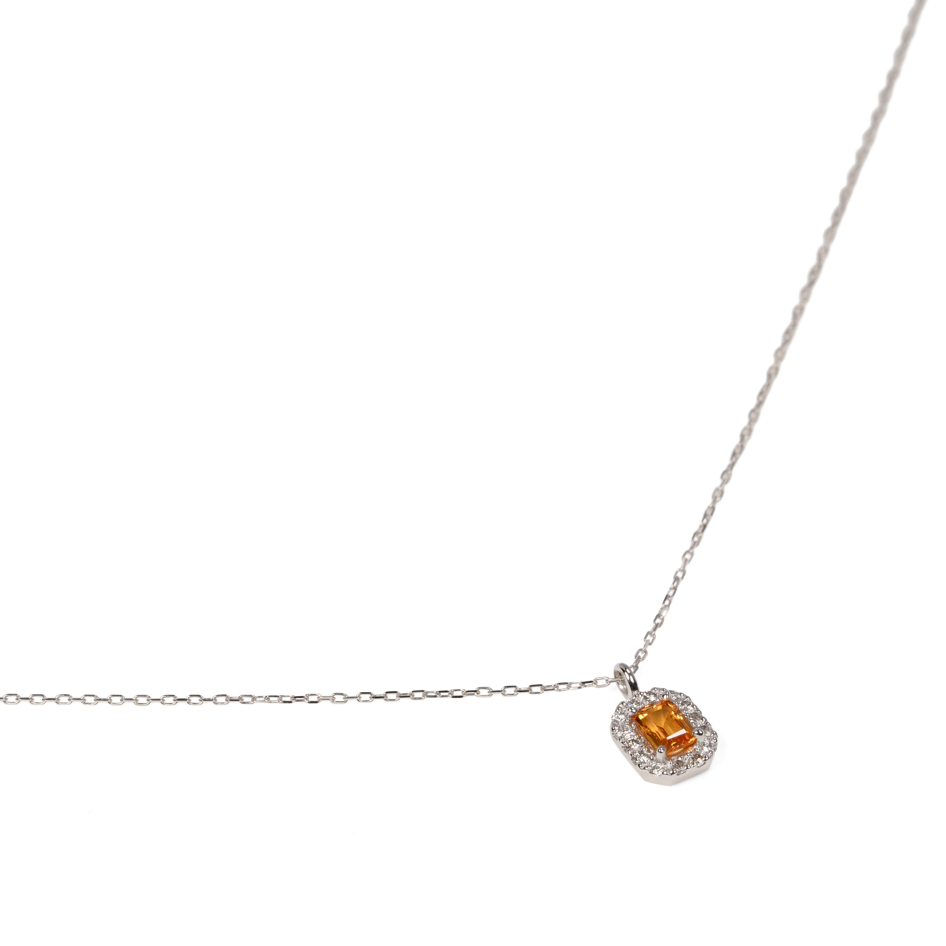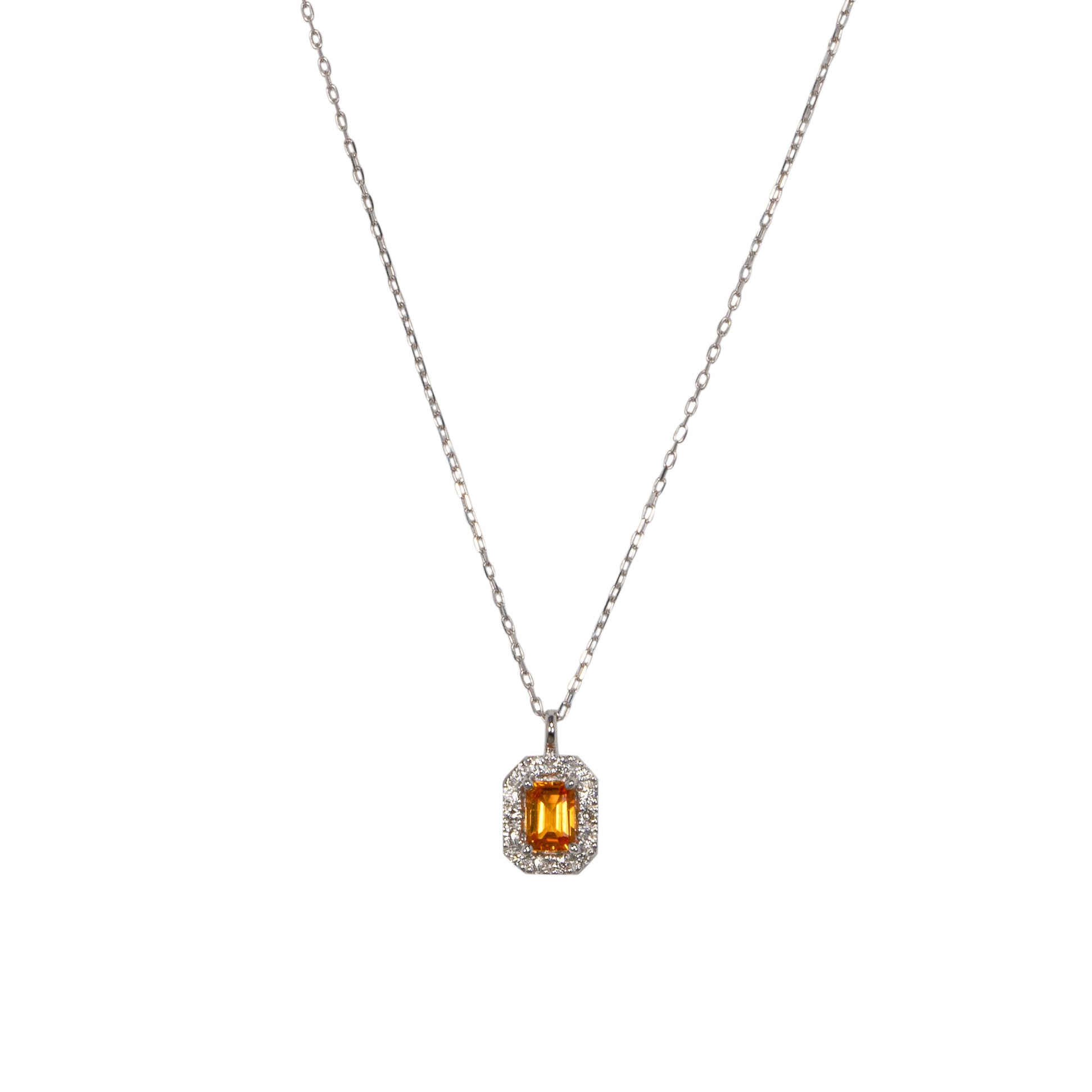 鮮やかなオレンジを含んだイエローカラーのファンシーサファイアと繊細に輝くダイヤモンドで仕立てた、シンプルで存在感あるデザイン。デイリーに使えるサイズ感も魅力のネックレス。