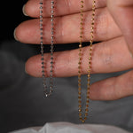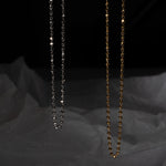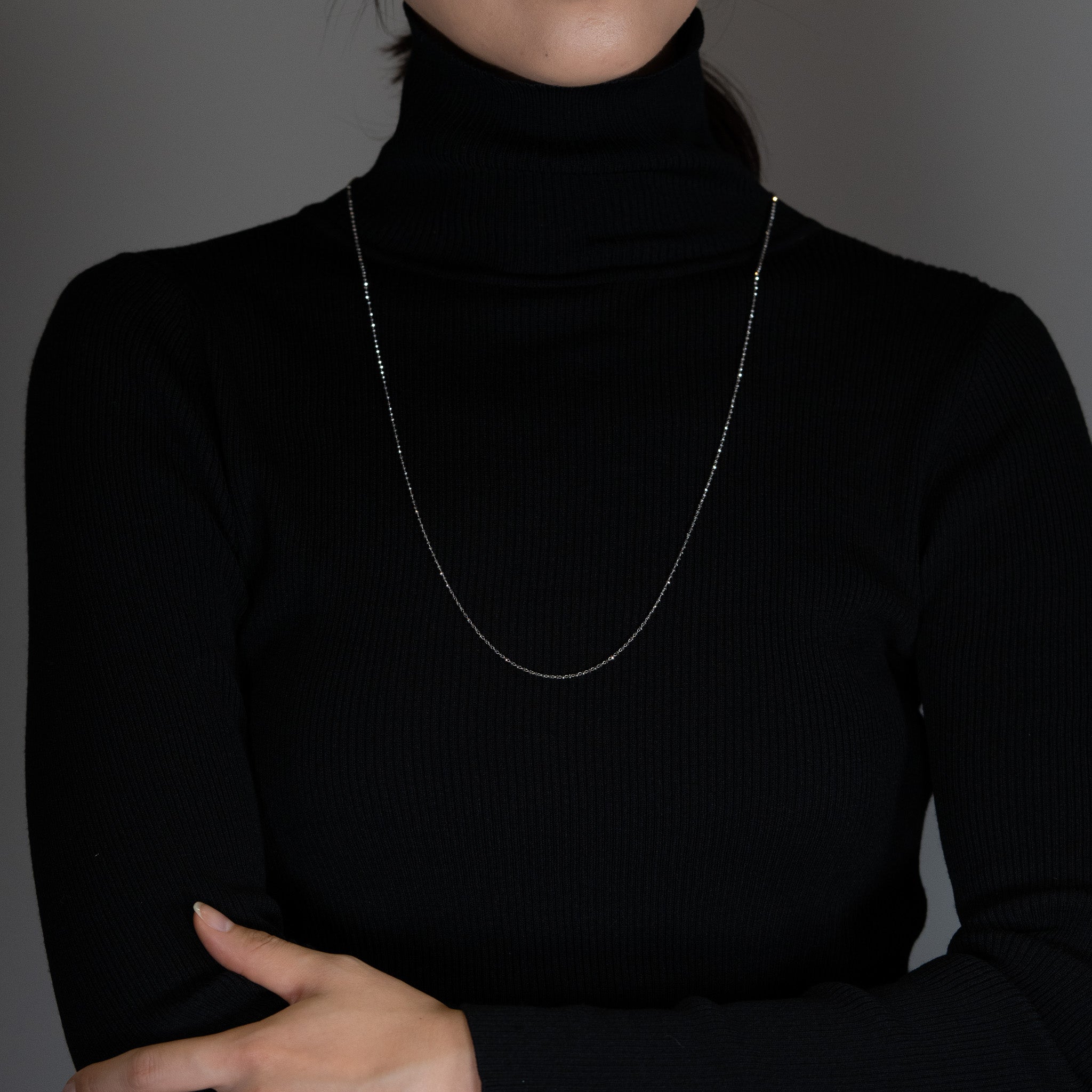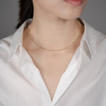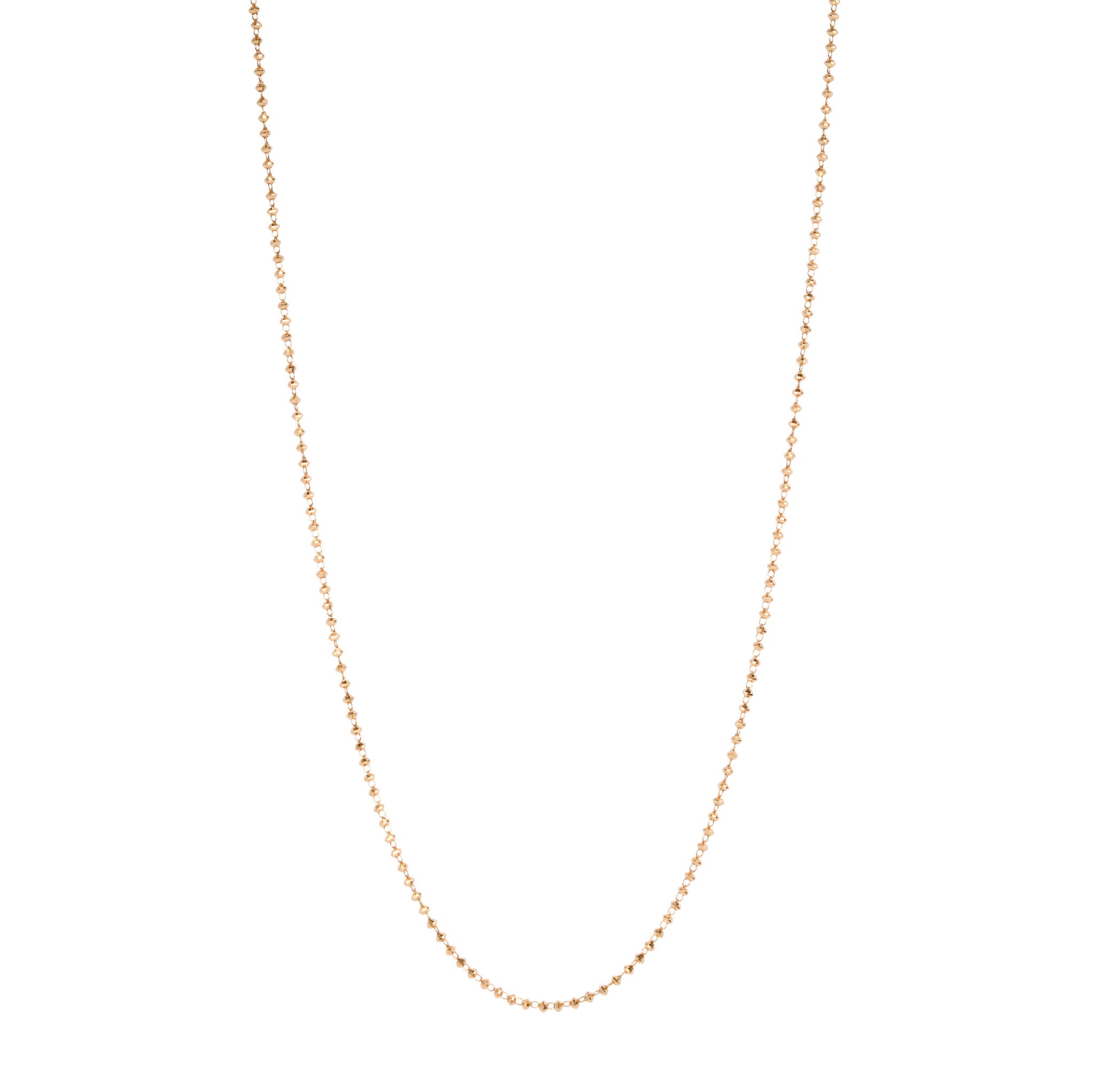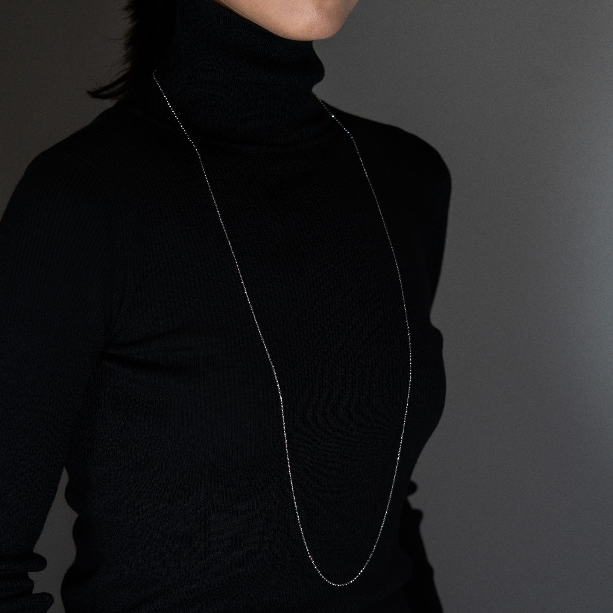 ダイヤモンドのような多面体カットが施されたゴールドが、繊細でありながら力強く煌めくネックレス。職人の手作業で丁寧に仕立てました。チョーカー風に短く着けても、ロングで揺れる輝きを楽しんでも美しく映えるデザインです。特別な日に、ぜひこの美しい煌めきを合わせていただきたい逸品。