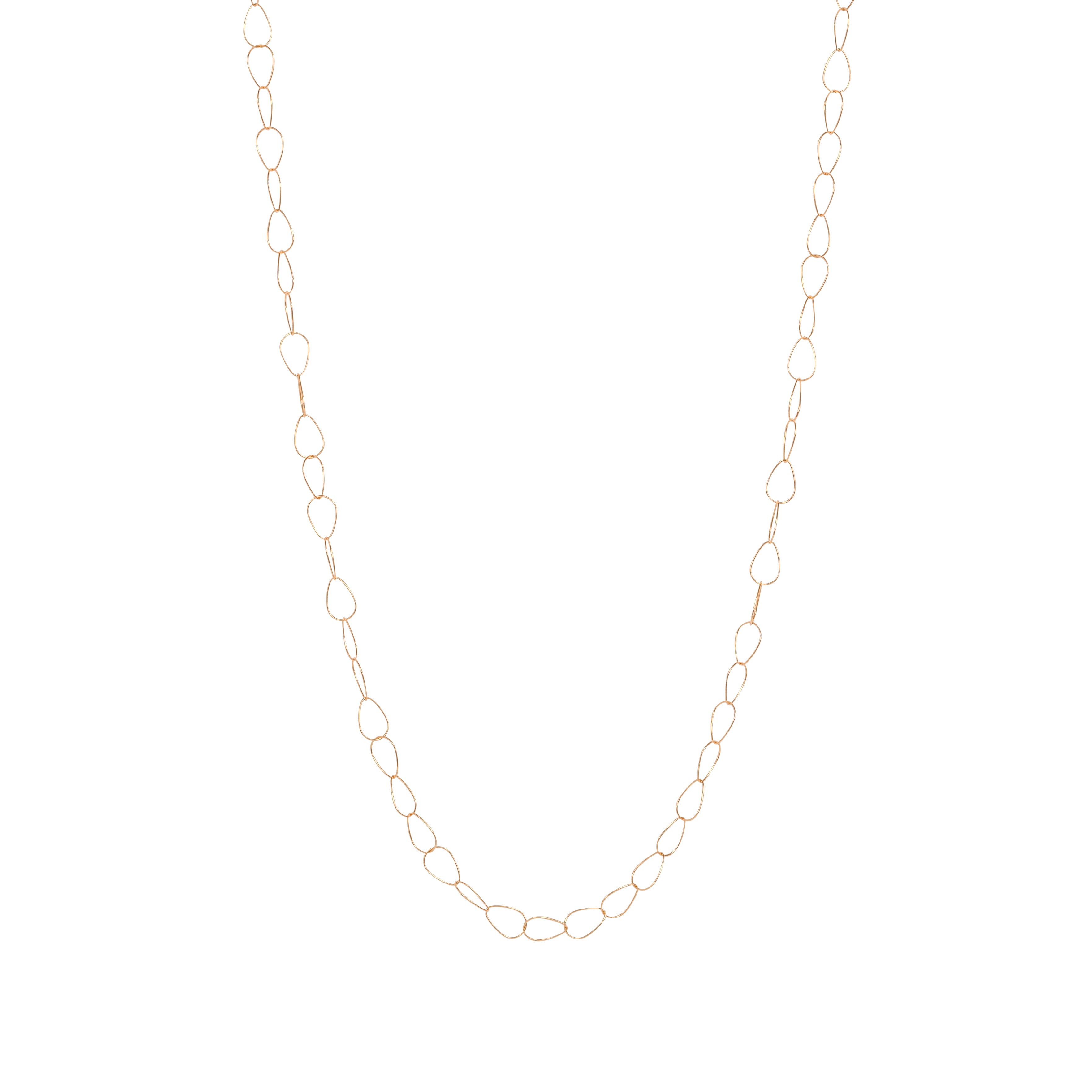 エッグシェイプの繊細なゴールドで仕立てられた、ボリューム感と軽やかさが共存するネックレス。単体での着用はもちろん、重ね着けでも美しく映えるデザインで、幅広いスタイルにマッチする逸品です。