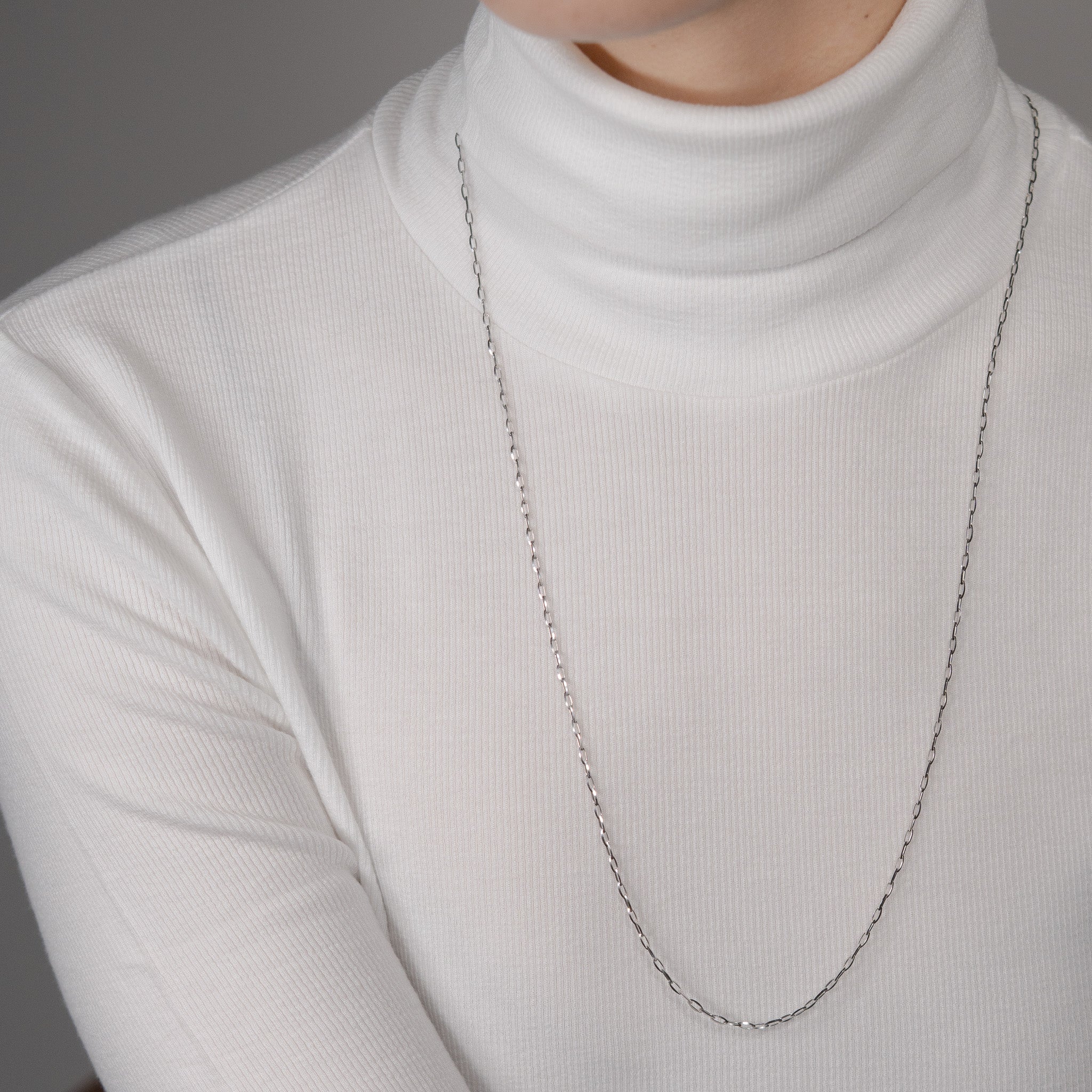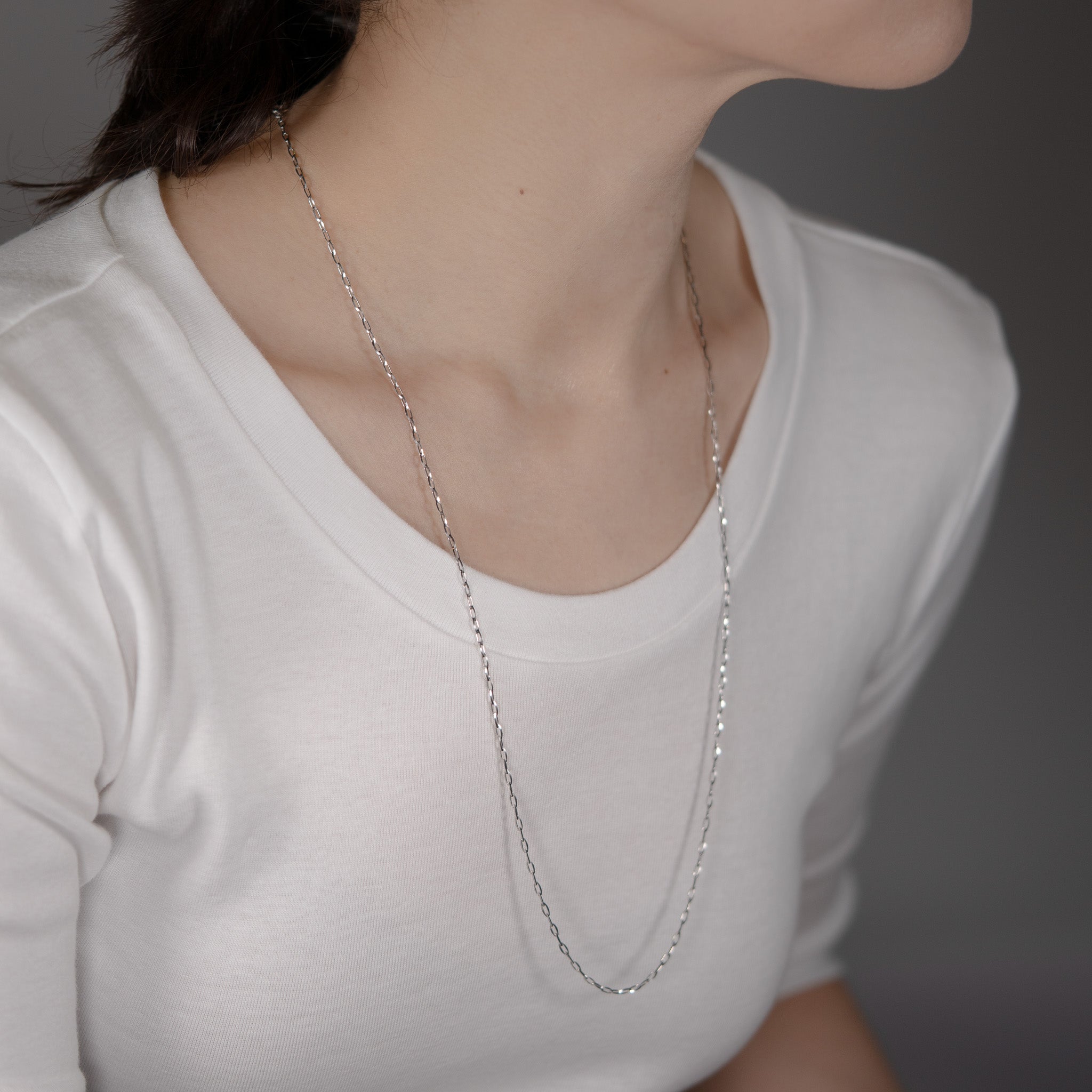 カジュアルな印象を与えつつ、チェーンパーツの角を丁寧に磨き上げ、クールさの中にも柔らかな丸みを感じる上品なネックレス。70cmの長さで、単体での着用はもちろん、トップを付けたり重ね付けしたりと、さまざまなスタイルに映える逸品です。