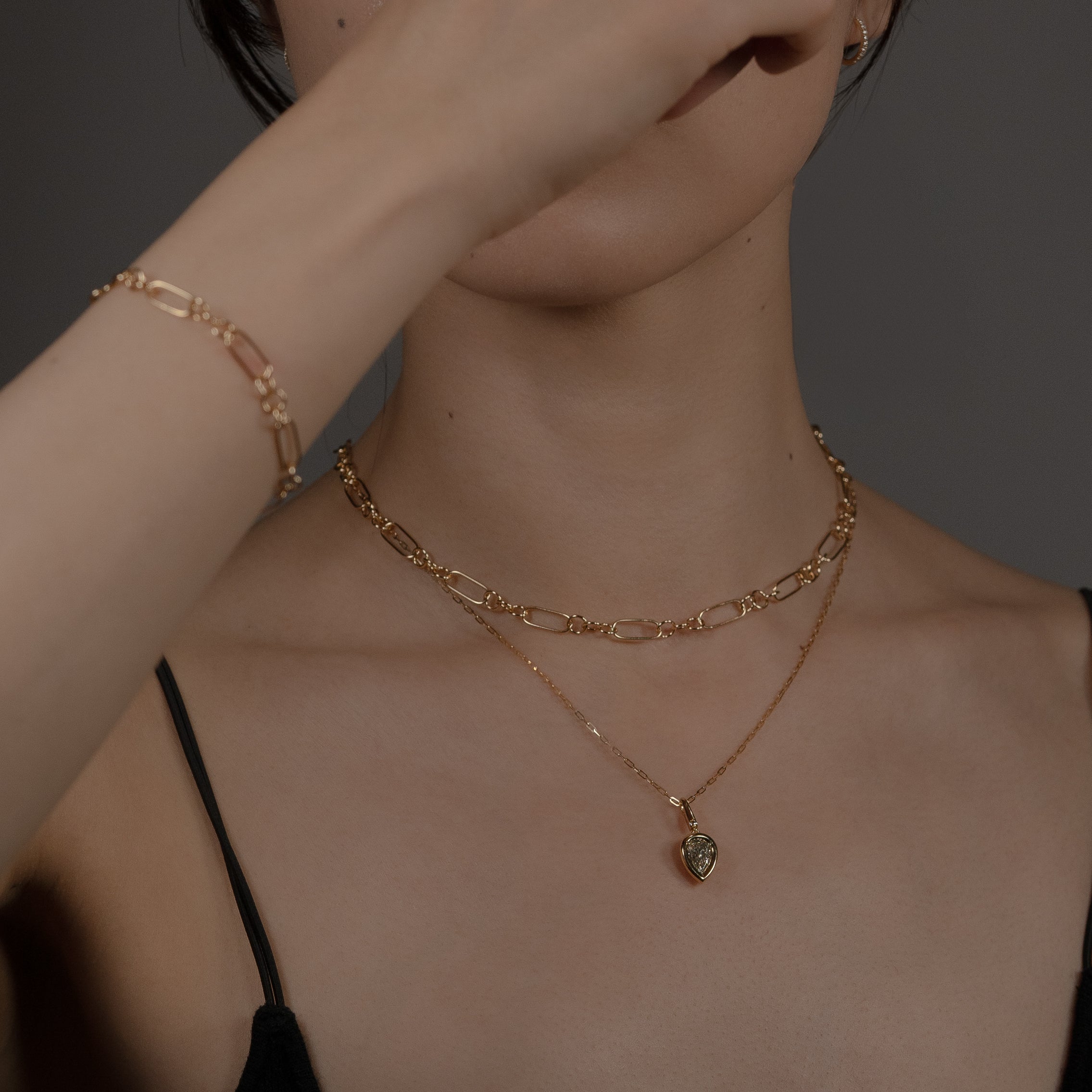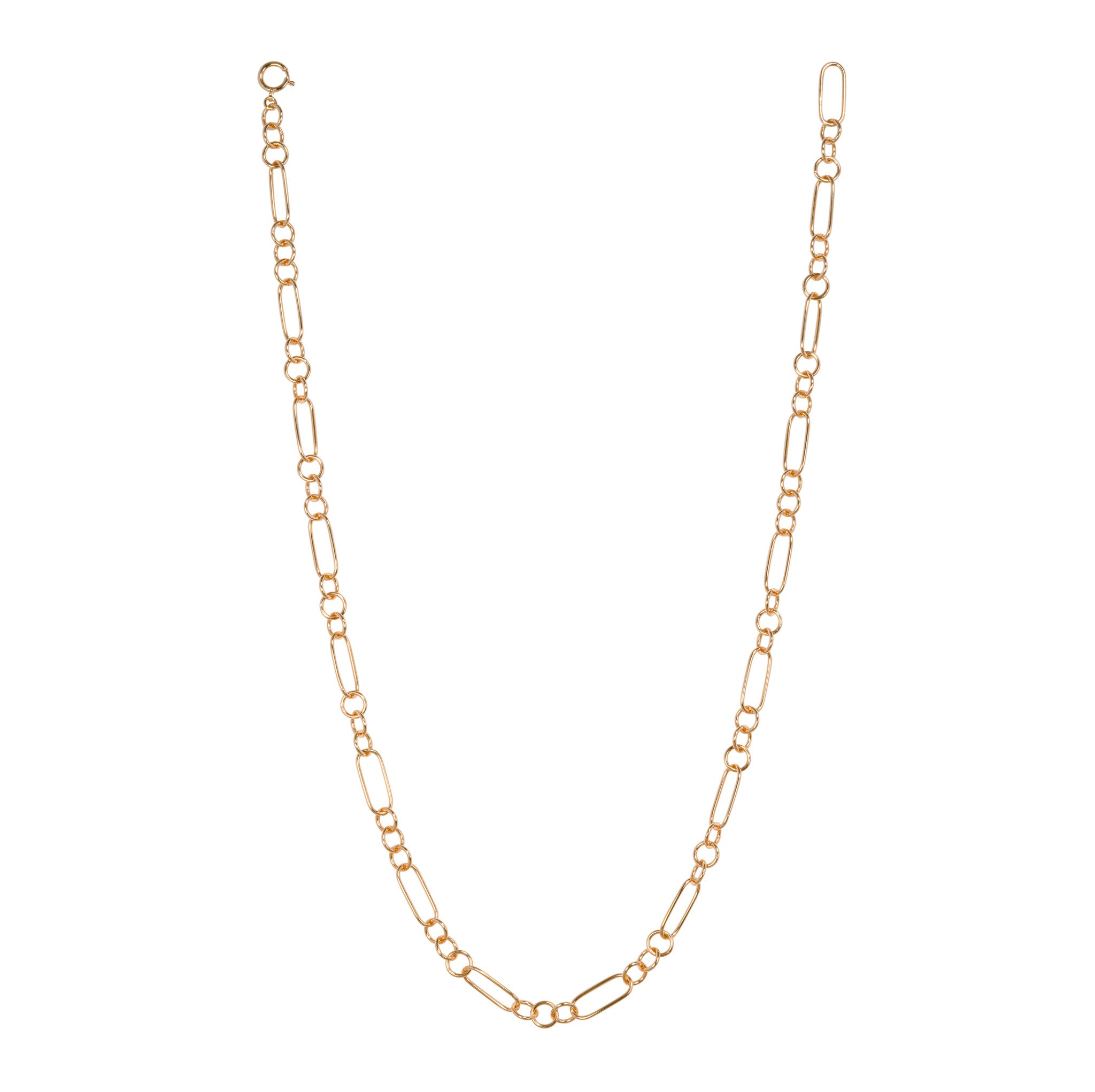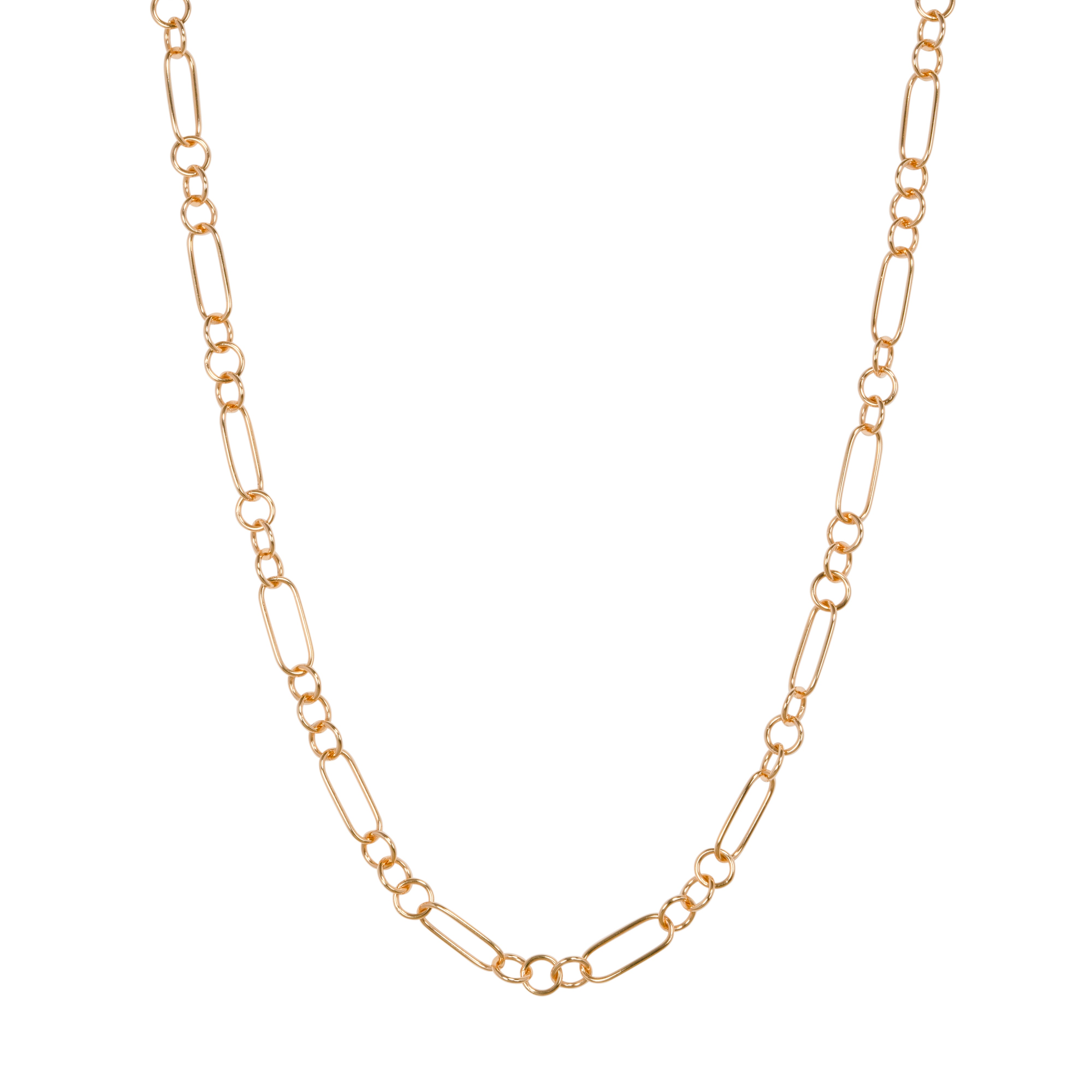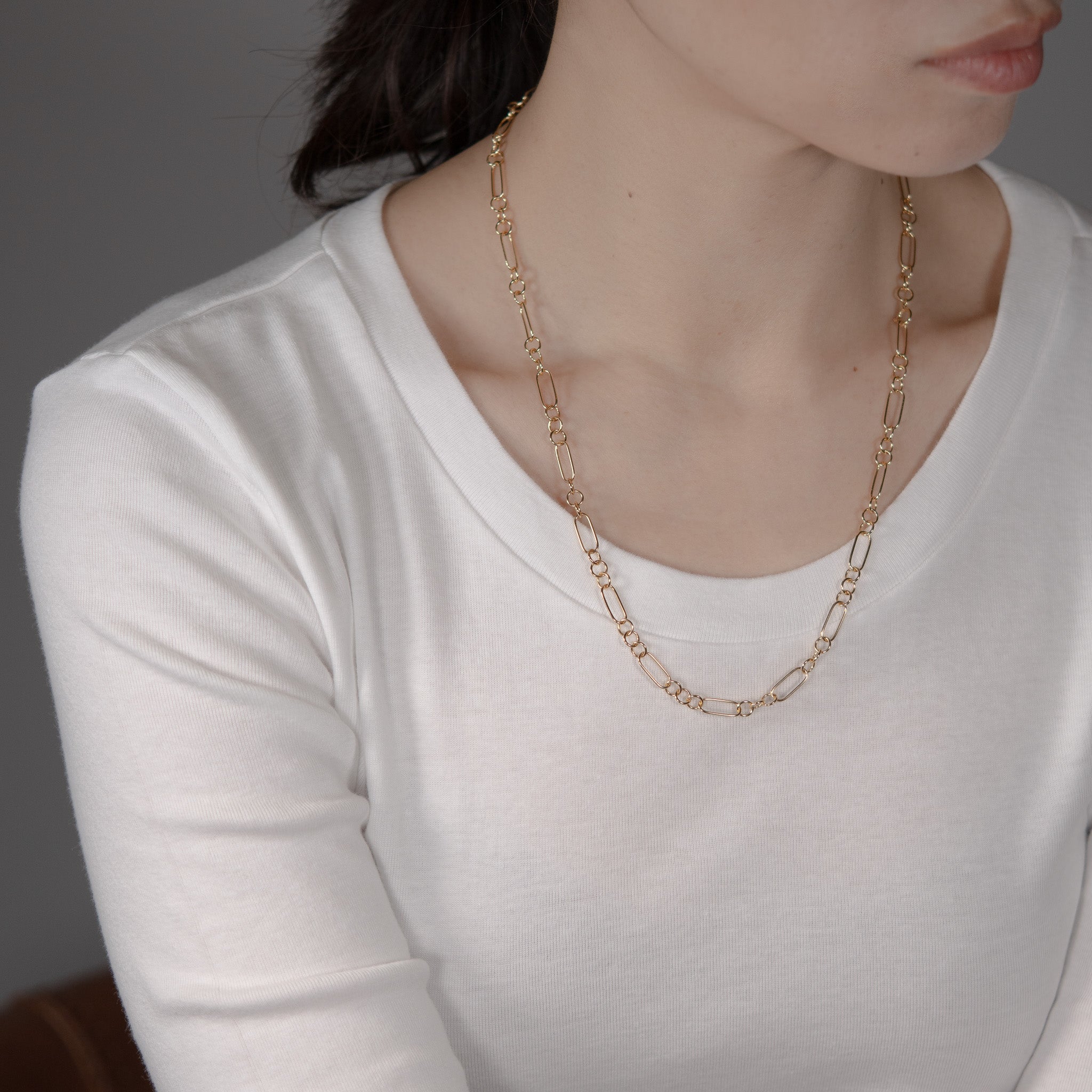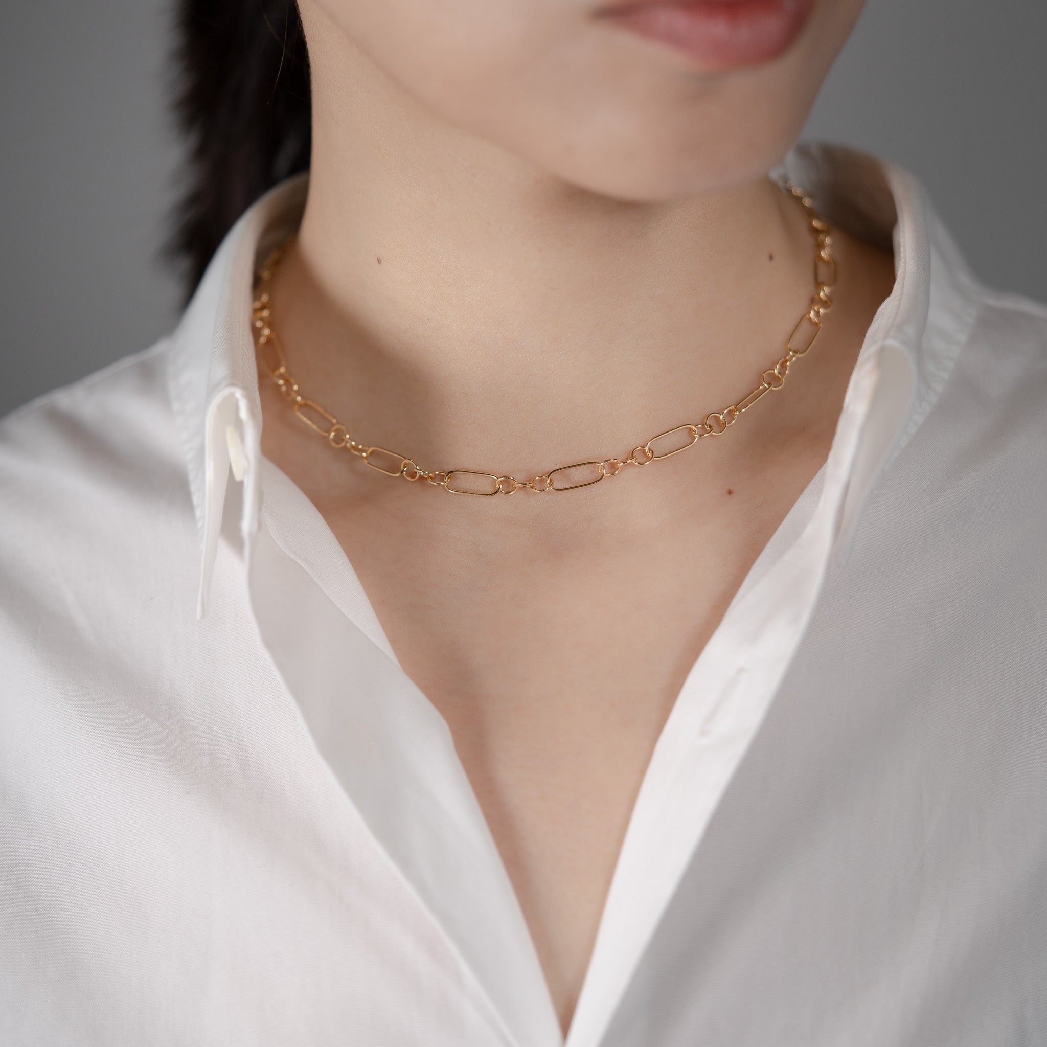 オーバルとラウンドのゴールドで仕立てた、ボリューム感と軽やかさが共存するネックレス。チェーンの輪に金具を留めることで、自由に長さを調節できます。同じデザインのOR ブレスレットと繋げれば、コンバーチブルスタイルとしても楽しめるおすすめの逸品です。