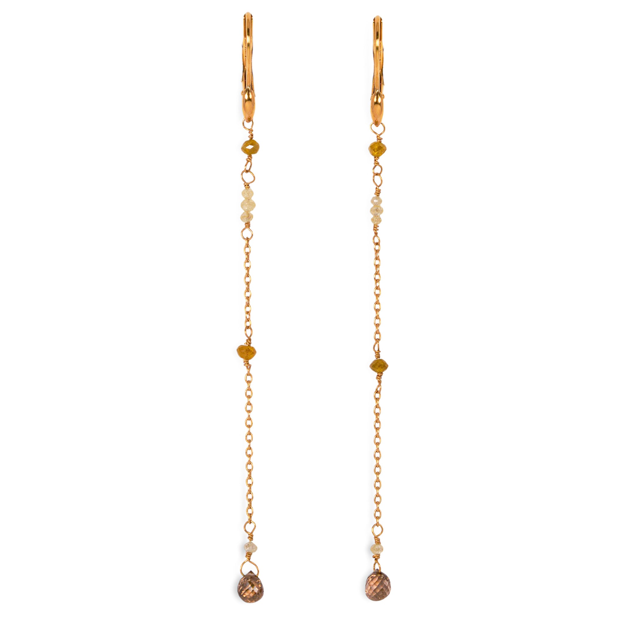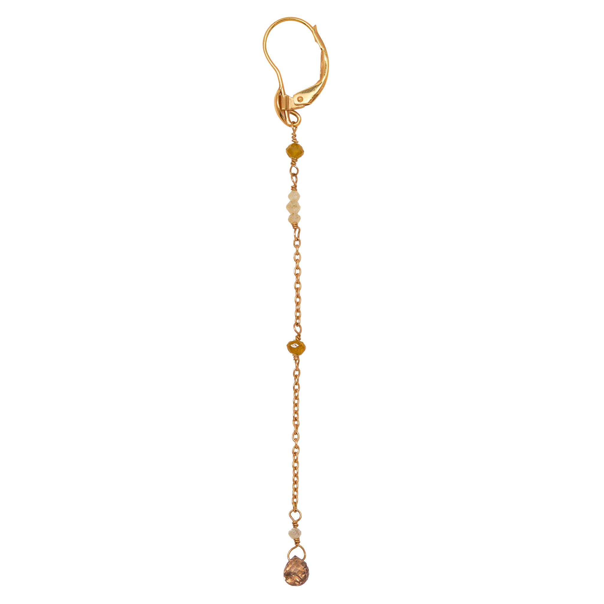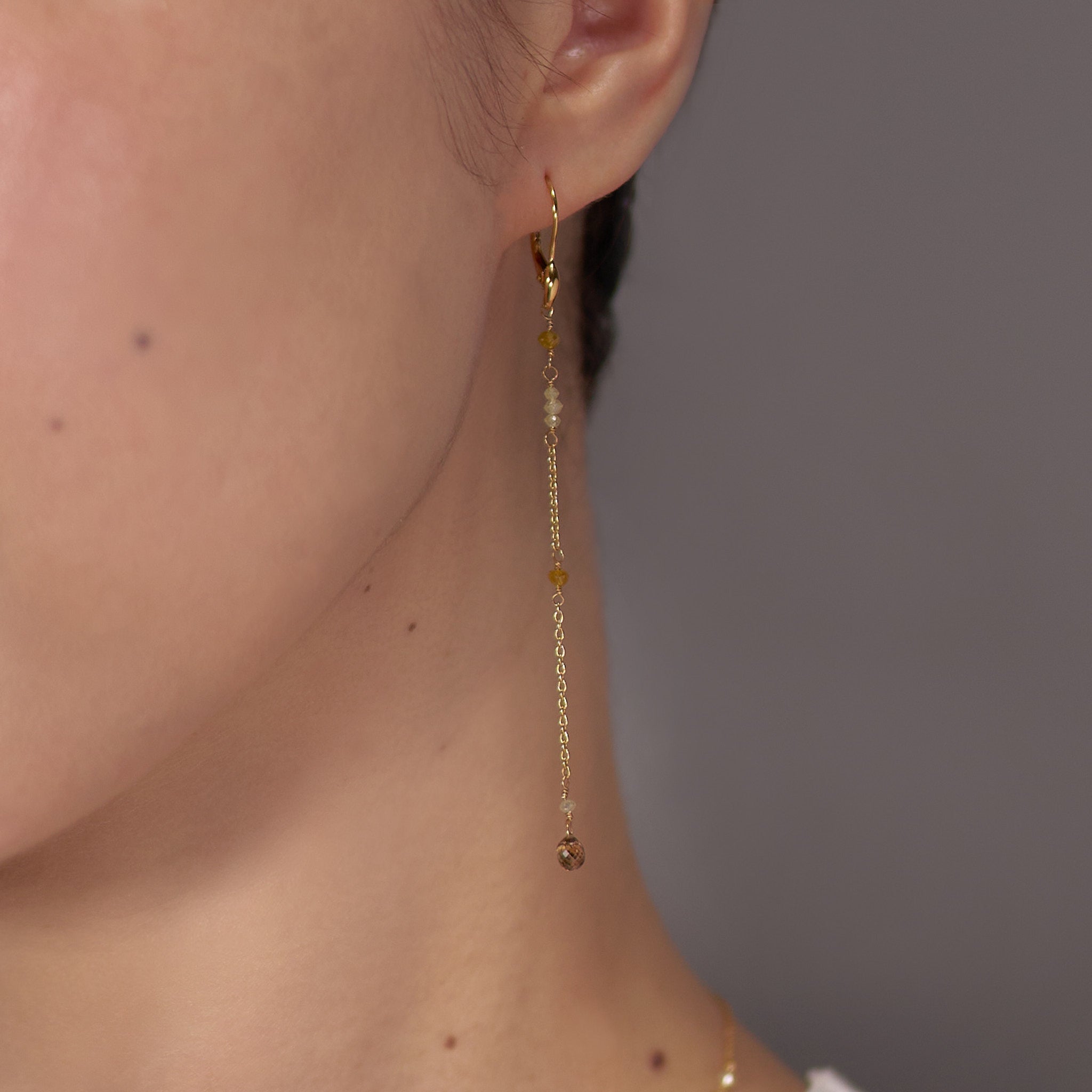 優しいイエローとアイスカラーのラフダイヤが、どこか懐かしさを感じさせる佇まい。静かな光をたたえるダイヤと繊細なチェーンに、ブリオレットカットのブラウンダイヤを贅沢にあしらいました。控えめな輝きが、大人の装いにそっと華を添えるピアスです。 ペアでのお作りです。