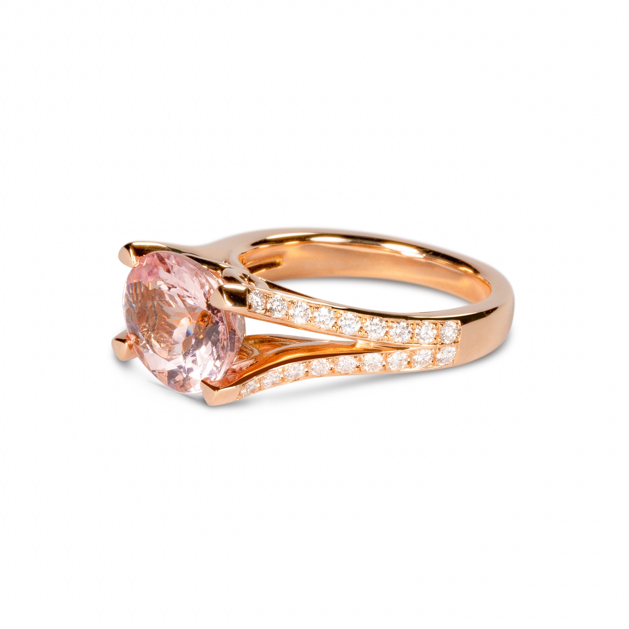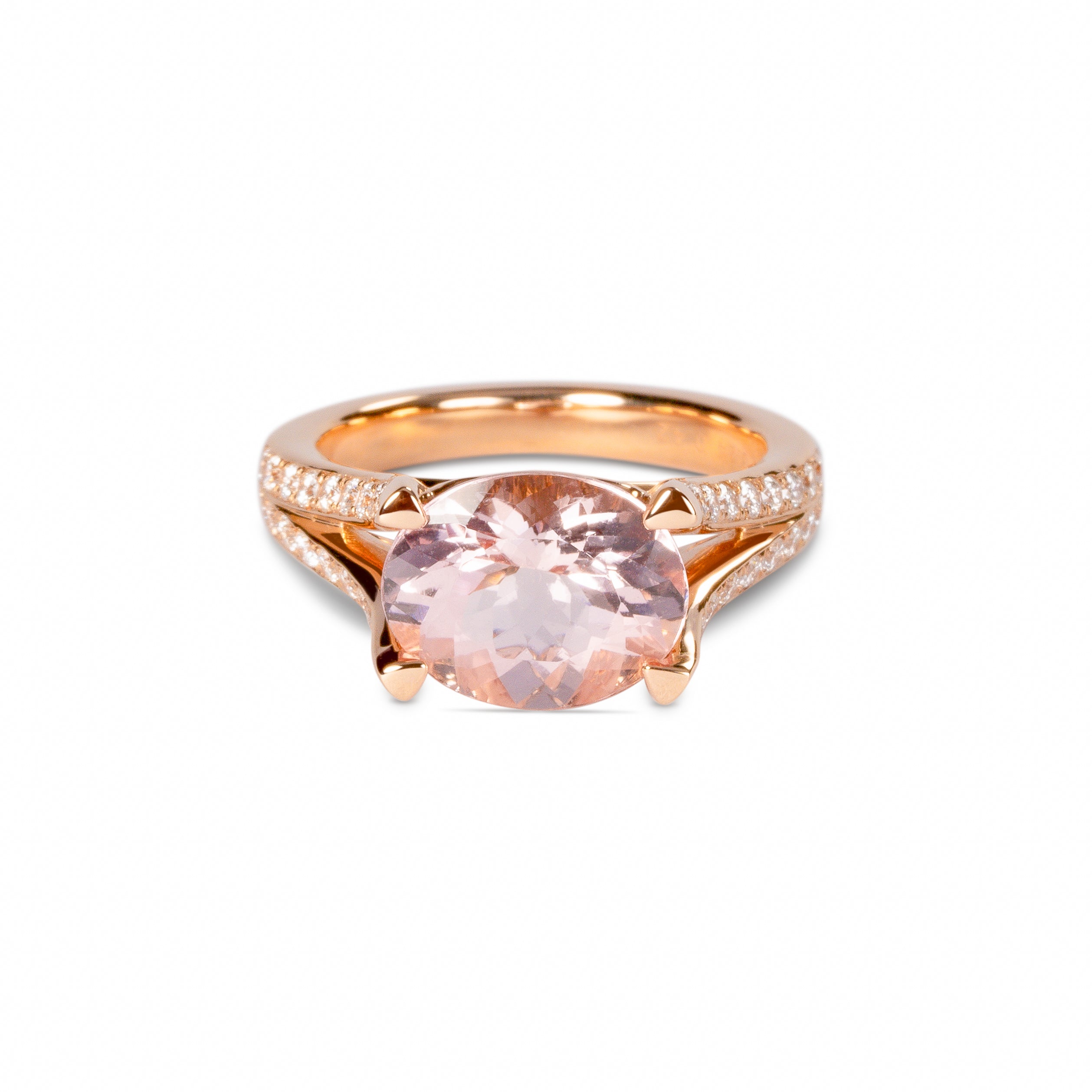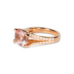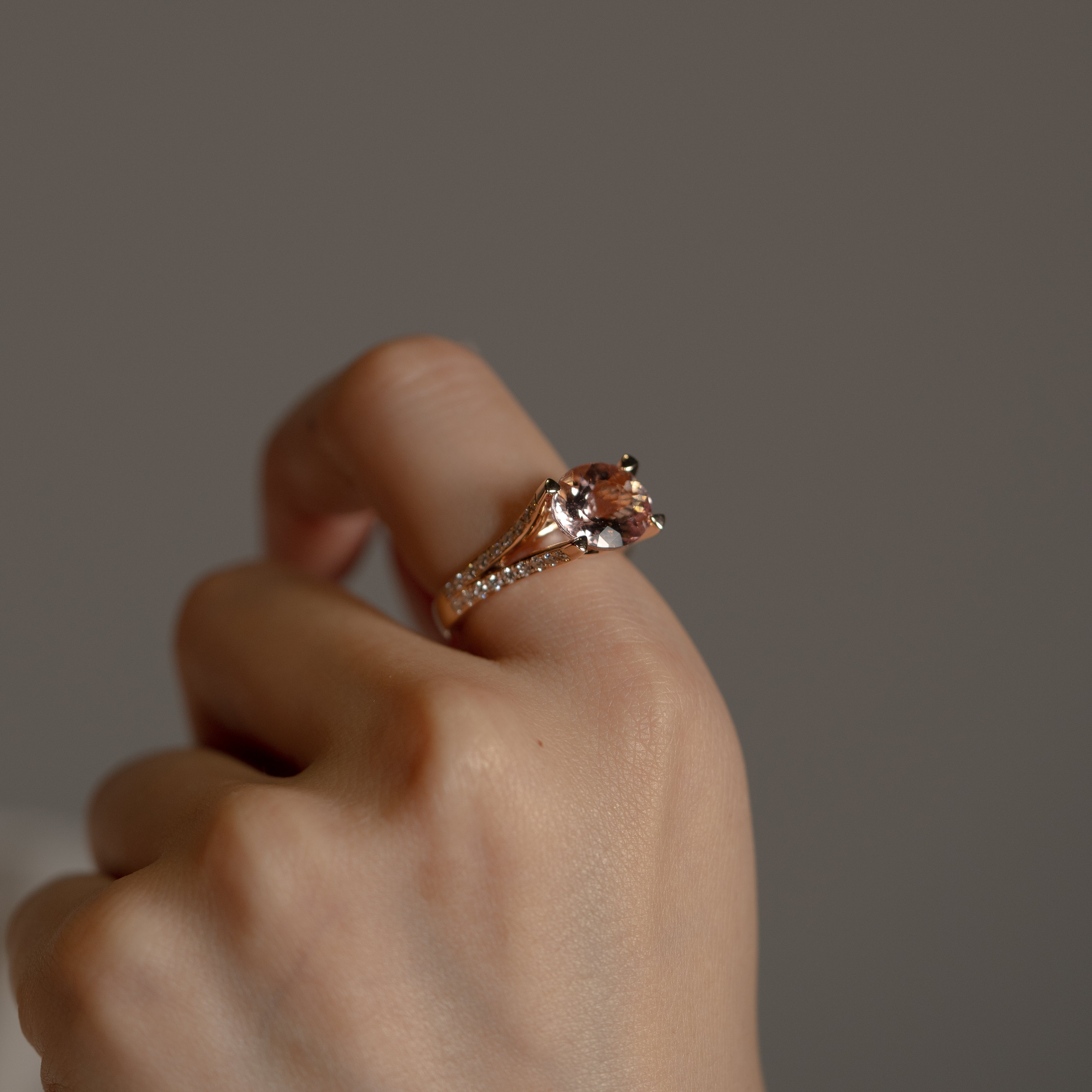 繊細なディテールと柔らかな輝きが魅力のモルガナイトリング。宝石の美しさだけでなく、横顔のカーブモチーフがモルガナイトの優しい色合いと調和し、洗練されたジュエリーに仕上がっています。たっぷりと使われたピンクゴールドが心地よい重量感を添え、手元を上品に演出します。
