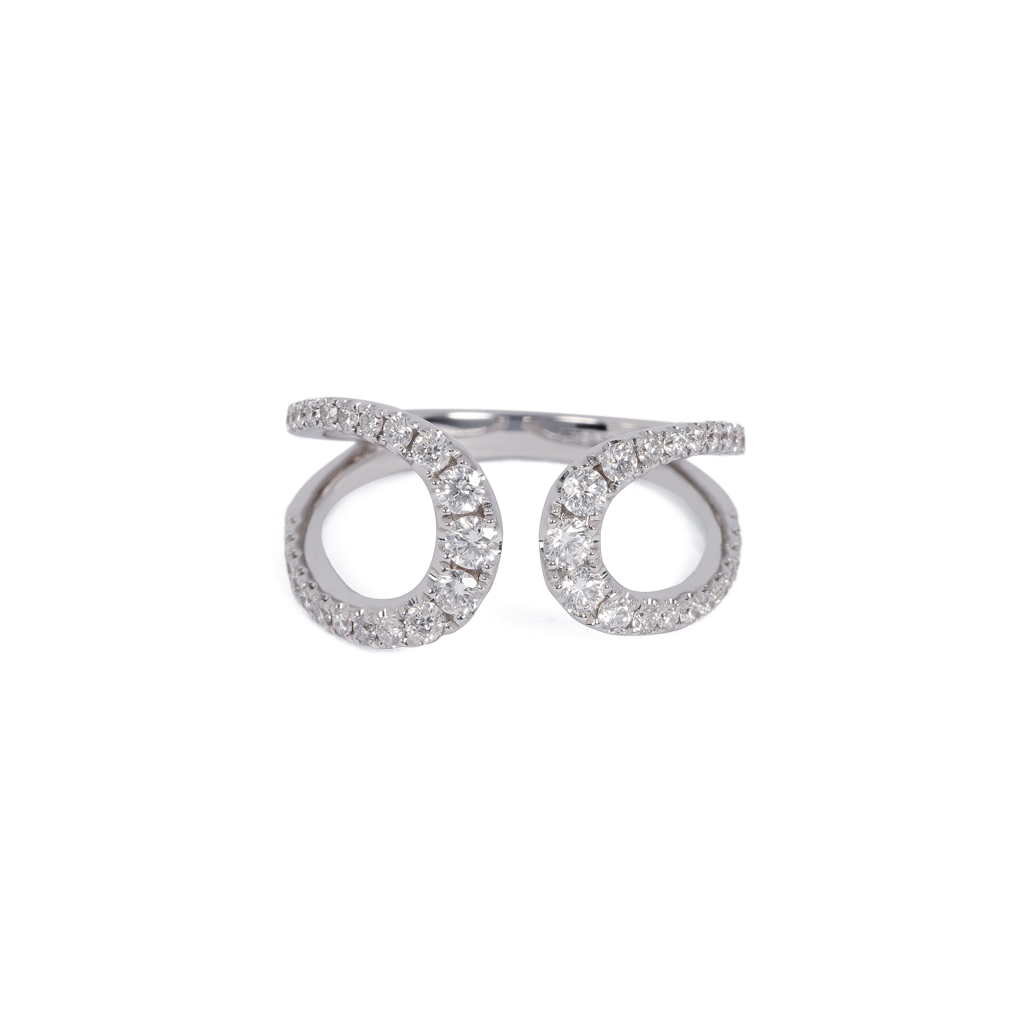 優しく指を包み込む2つの曲線。メレダイヤモンドは大ぶりのものを使用しており、その強いきらめきも楽しんでいただきたいリングです。