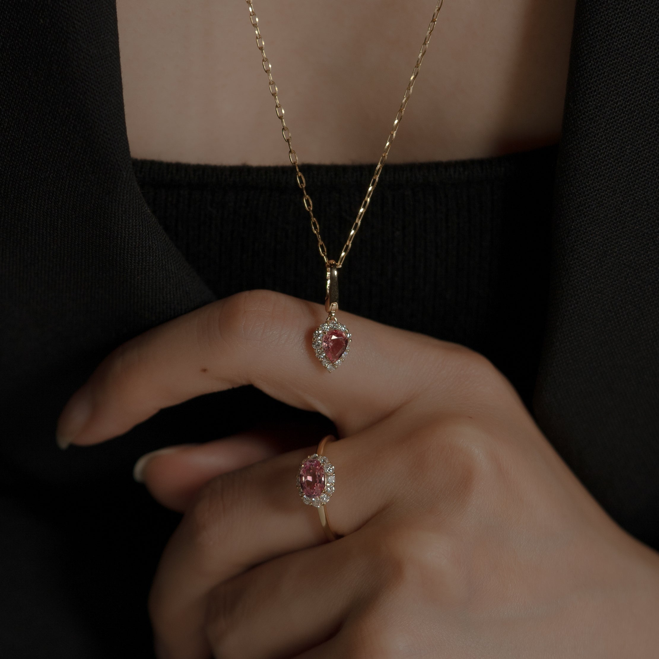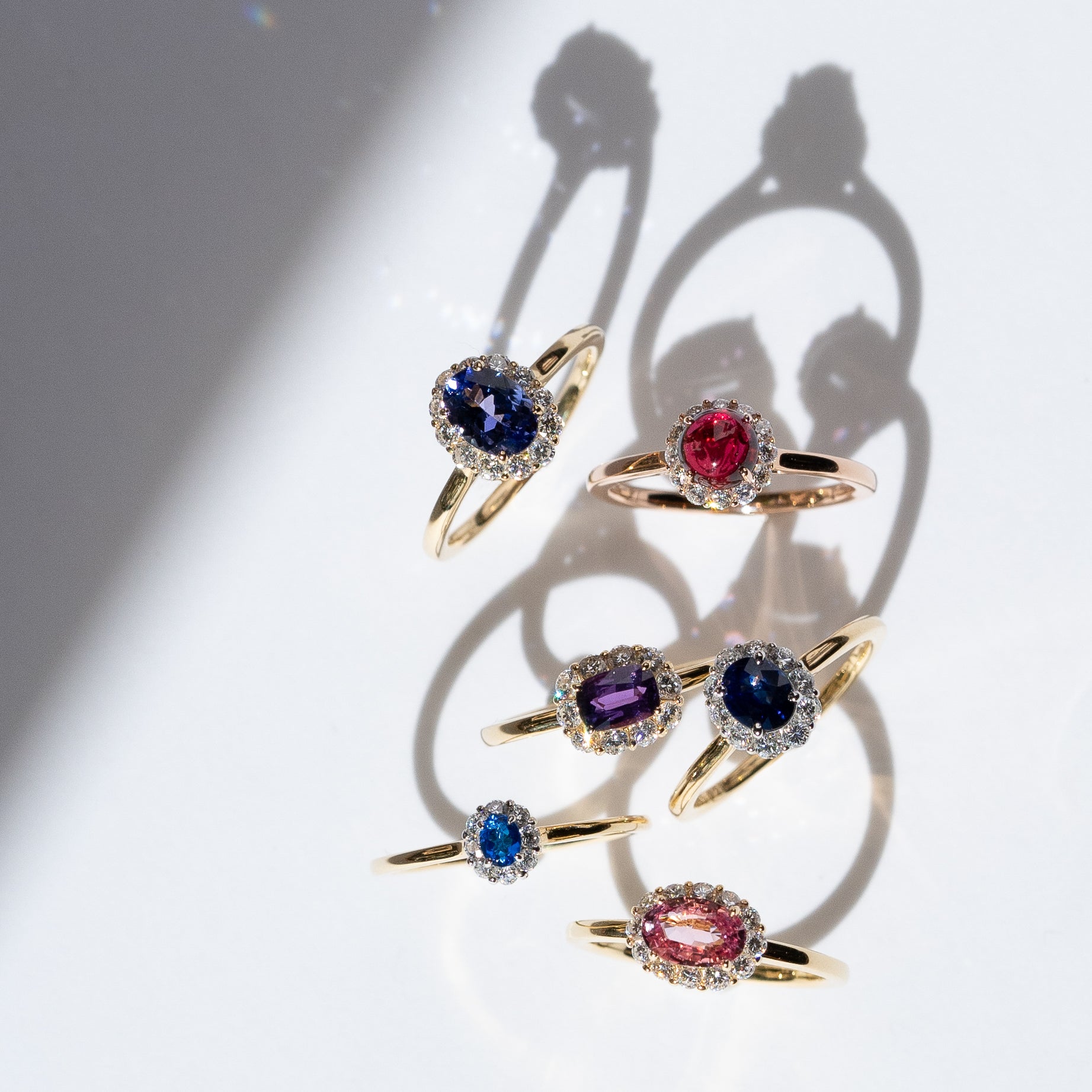 一粒の宝石に寄り添うダイヤモンドが、バレリーナのチュチュのように広がり優美に輝く。希少なセンターストーンを引き立てる上質なダイヤモンドと、さまざまなジュエリーとの多彩なレイヤードで魅せるコレクション。