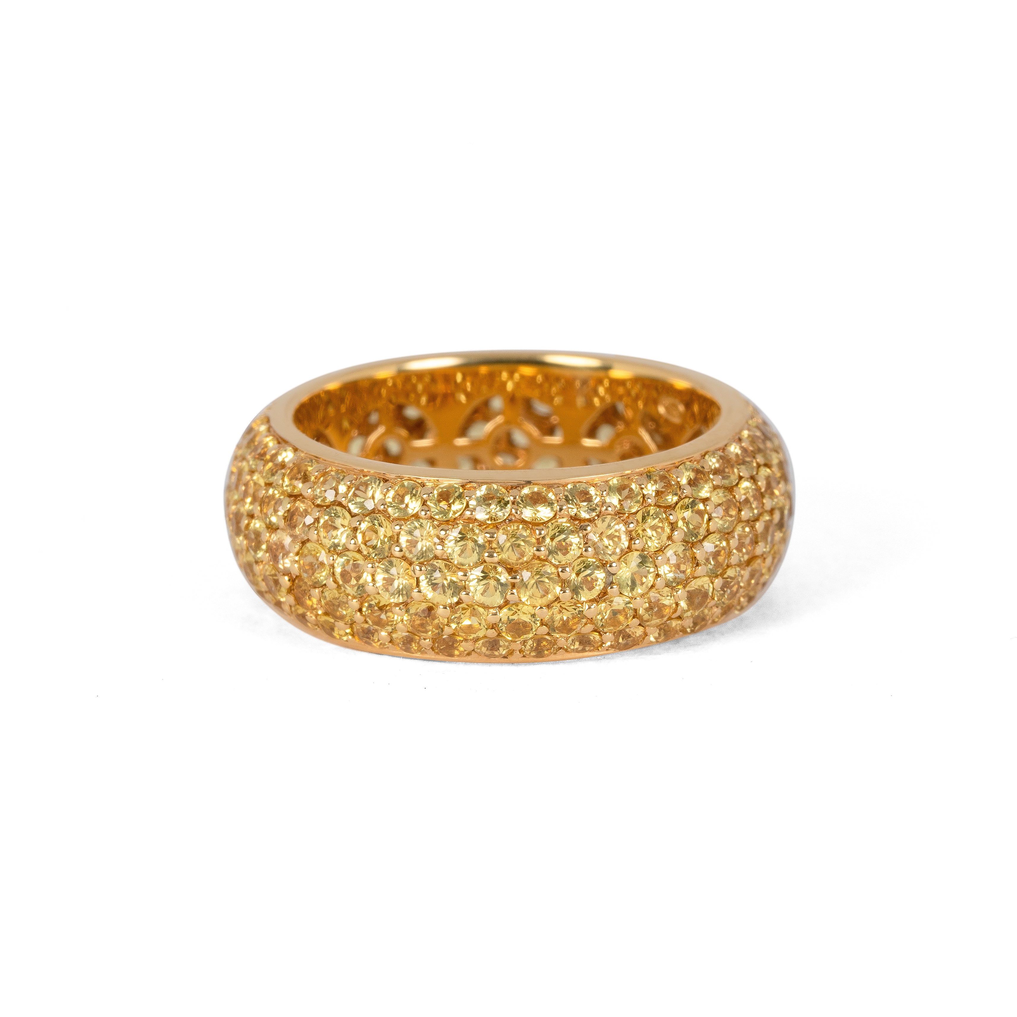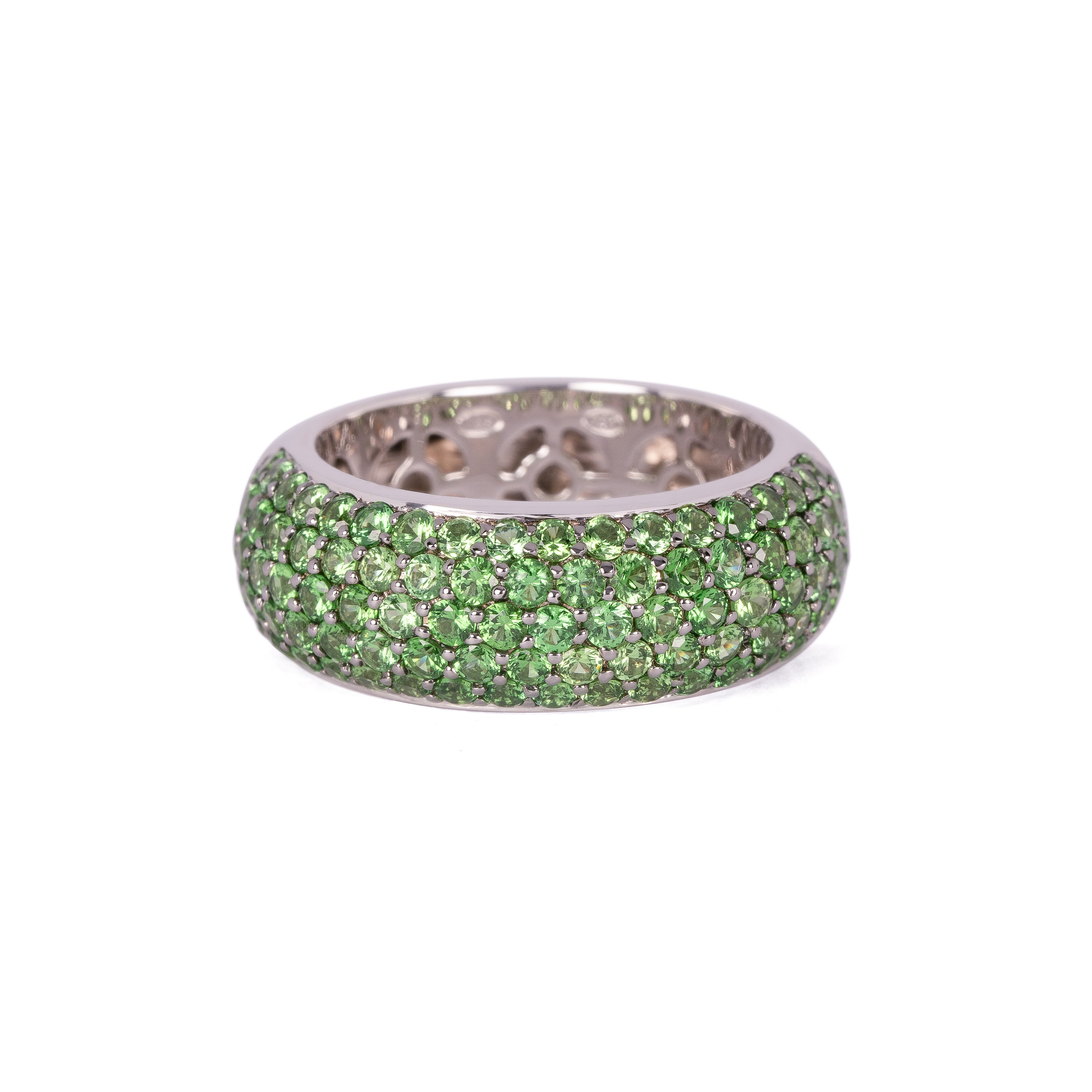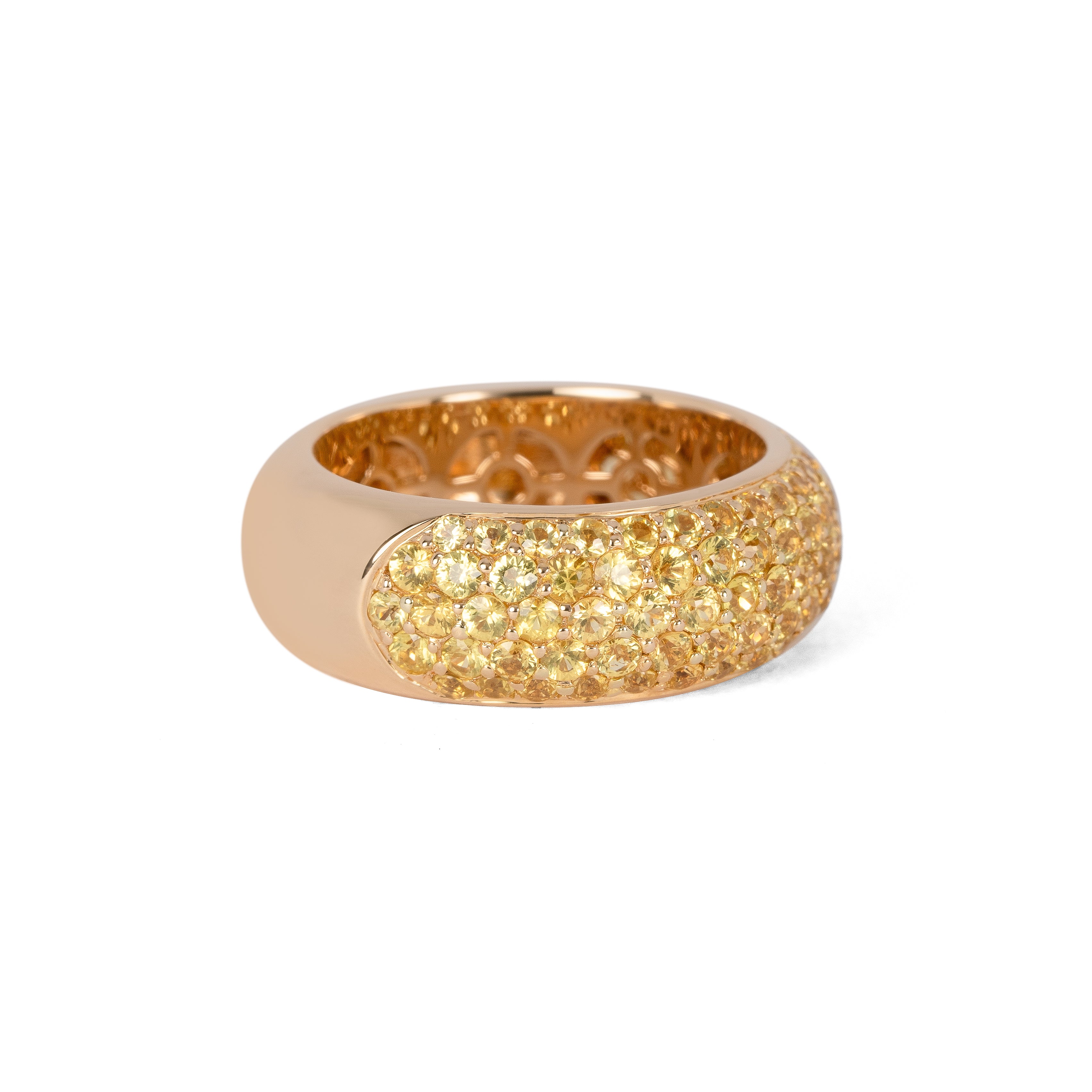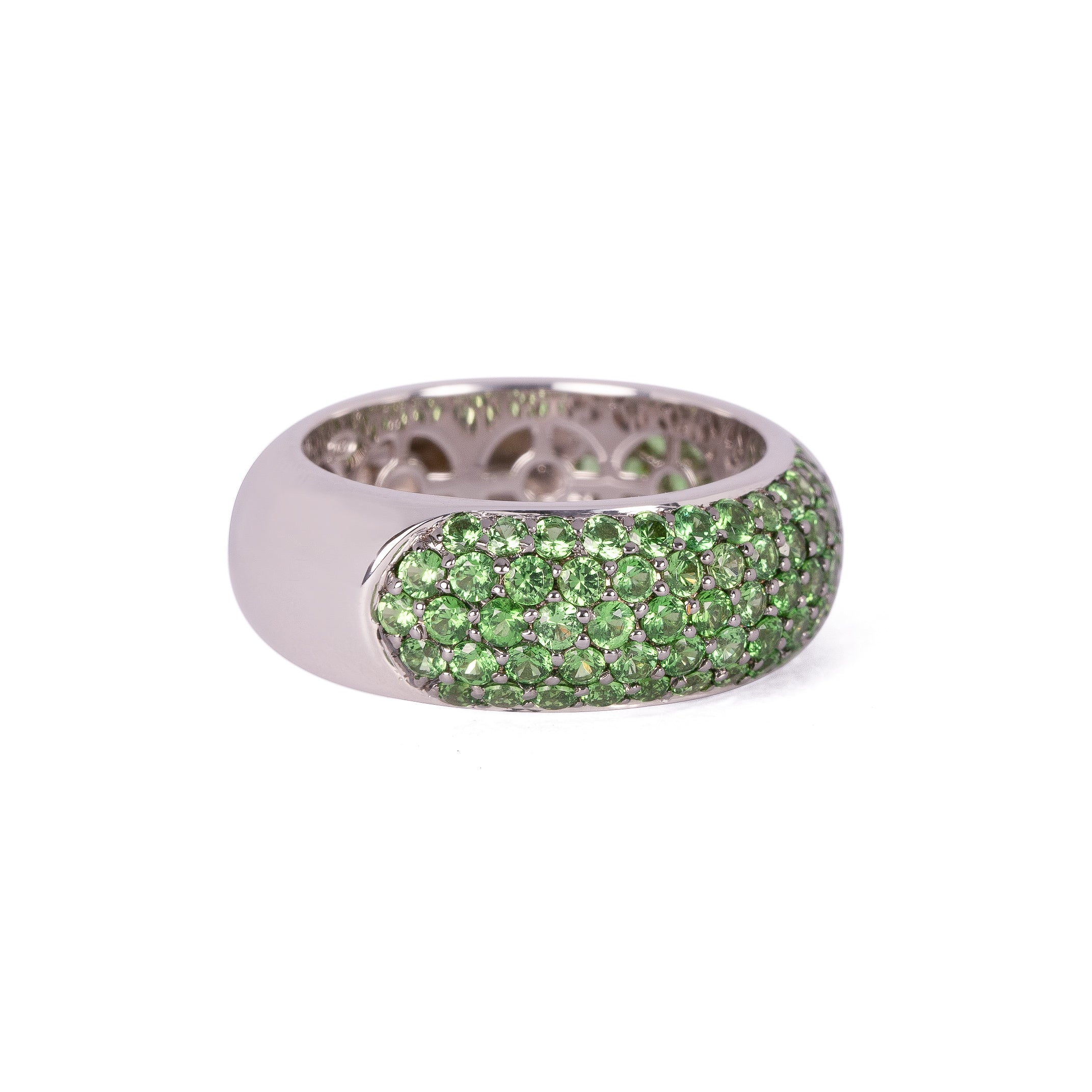 カラフルなパヴェセッティングのリングコレクション。デザインはシンプルながら一色使いのカラーストーンで仕立てることで、ラグジュアリーで洗練された魅力を発揮するジュエリー。