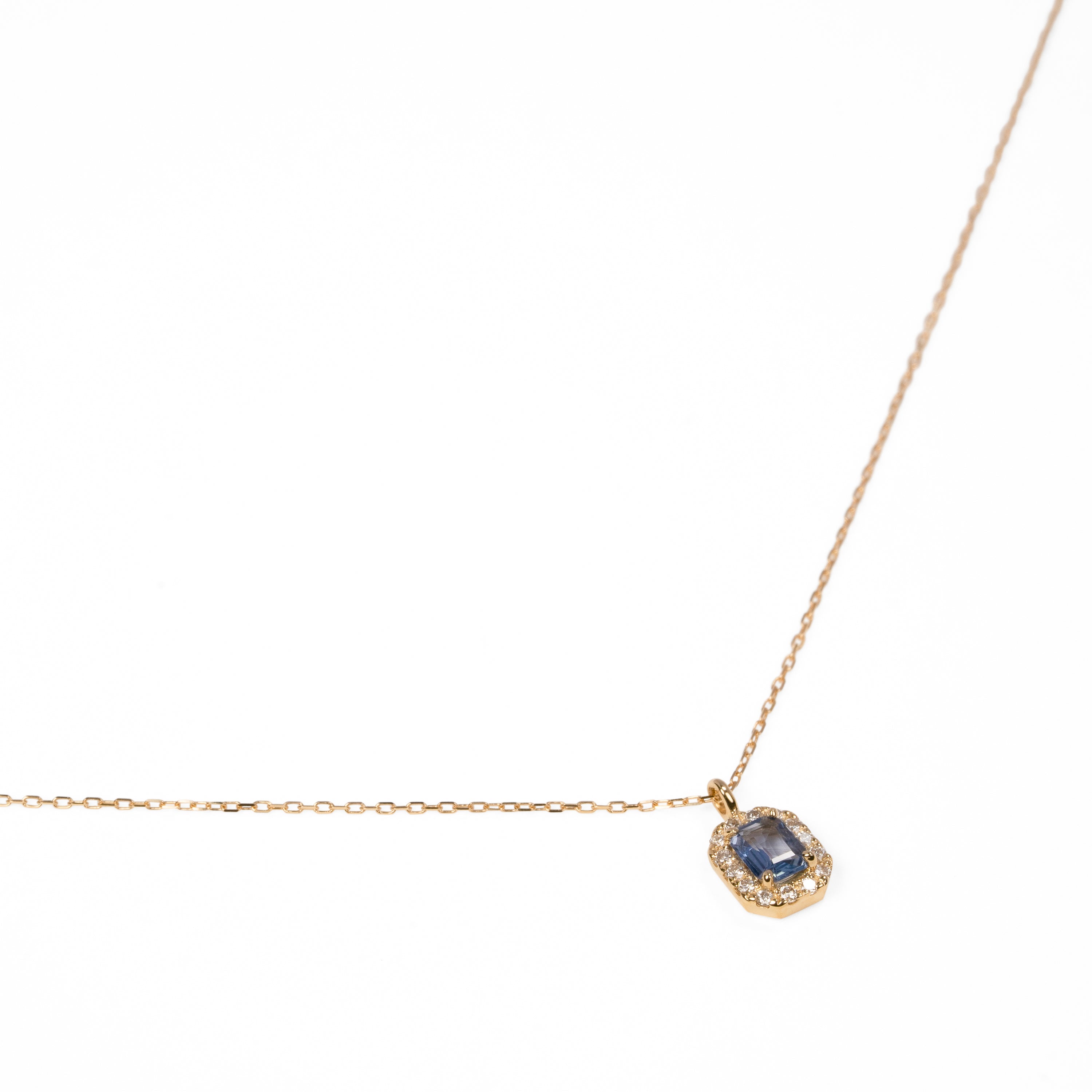 淡く落ち着いた青色のファンシーサファイアと繊細に輝くダイヤモンドで仕立てた、シンプルで存在感あるデザイン。デイリーに使えるサイズ感も魅力のネックレス。