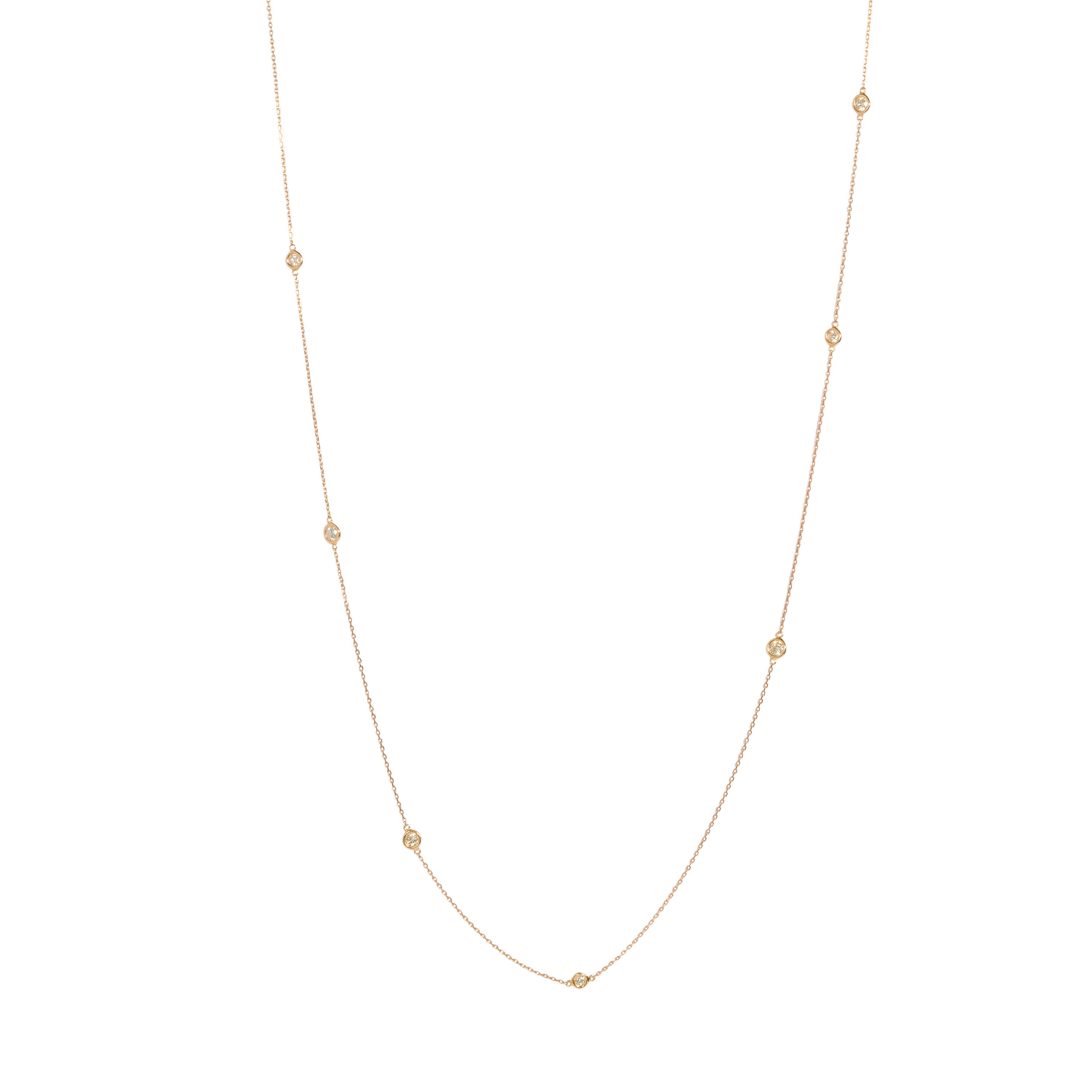 トータル1.2カラットアップのダイヤモンドをあしらったステーションネックレス。大小異なる10石のダイヤモンドがランダムに配置され、軽やかな動きを感じさせるデザインです。タイムレスで、あるのとないのでは装いの格が変わる、どんなスタイルにもマッチする万能なアイテムです。