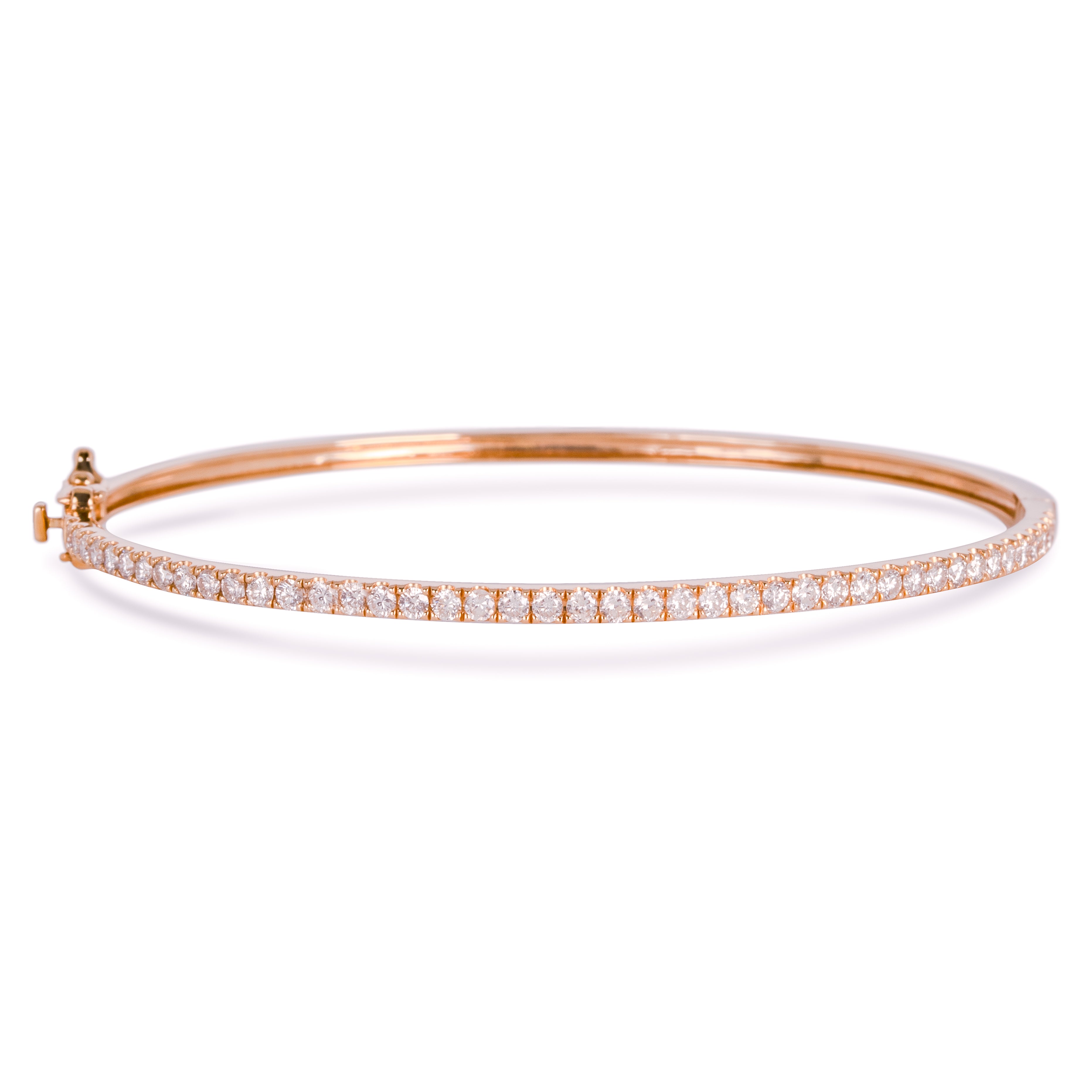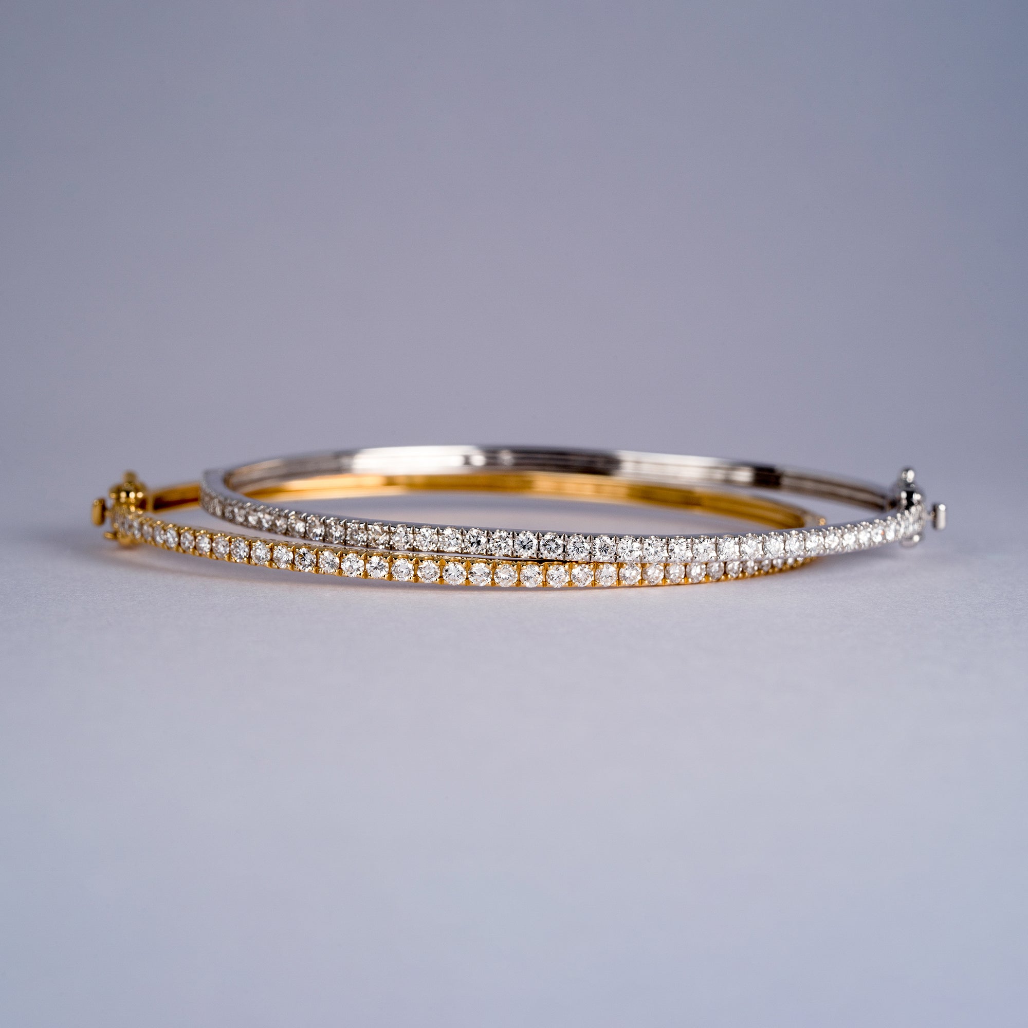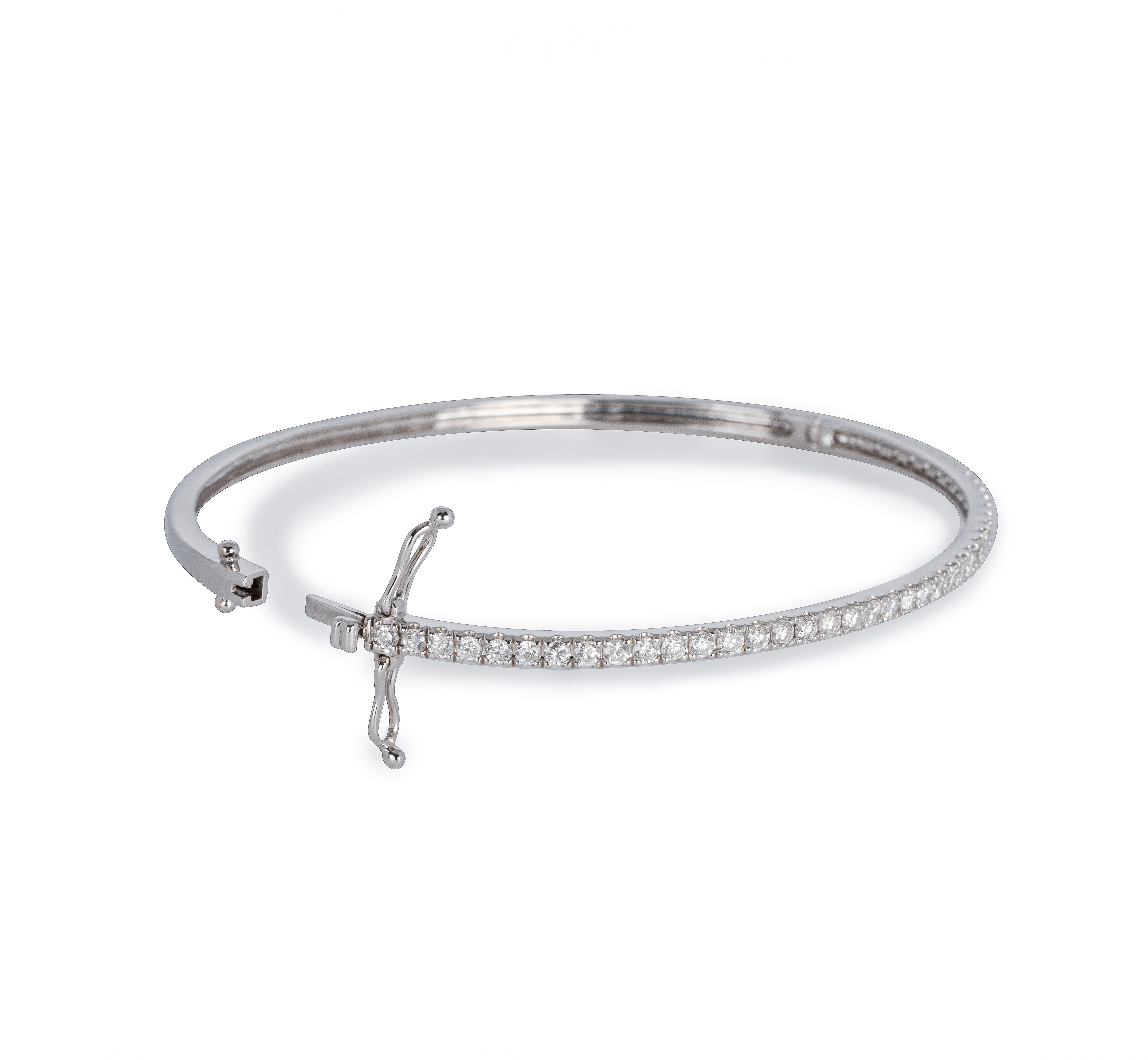 腕に自然に馴染むオーバル(楕円)形状のゴールドバングルに、トータル1カラットの上質なダイヤモンドをセッティング。あらゆるジュエリーコレクションにマッチする、こちらの万能アイテムは手にする方のスタイルを一段と引き立てます。安全かつ便利な差し込み式金具と2つのセーフティ機能を備え、日常の華やぎをしっかりとサポートします。