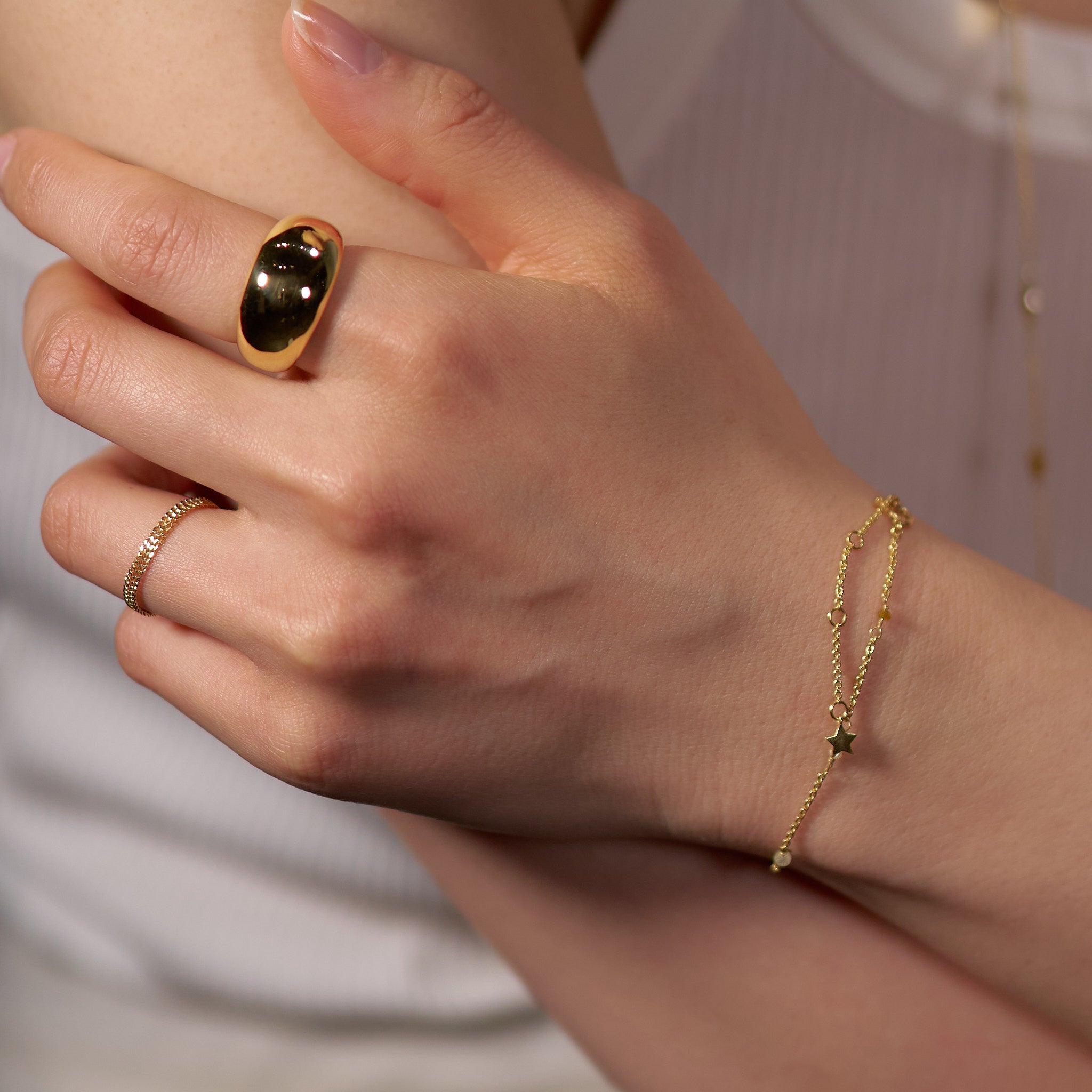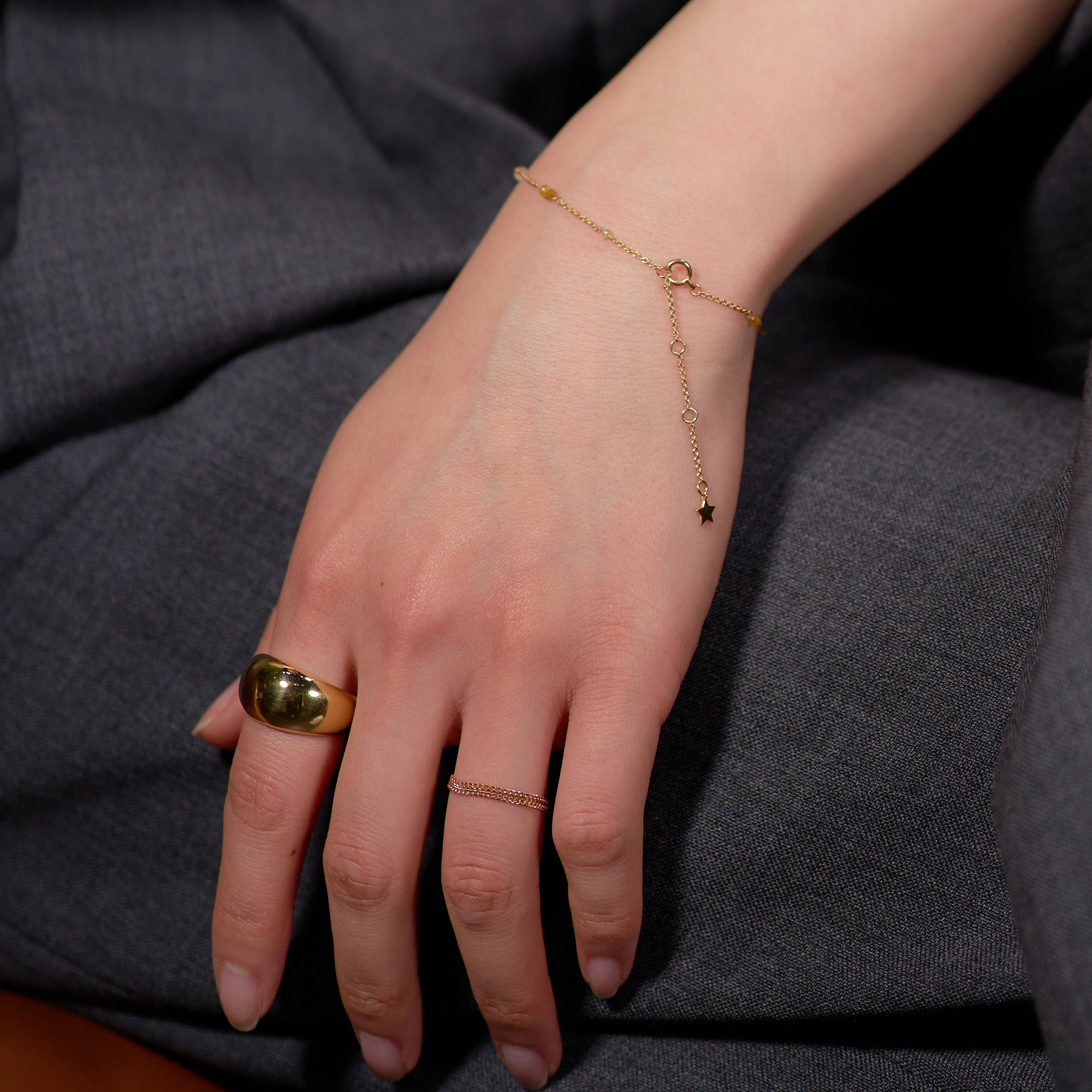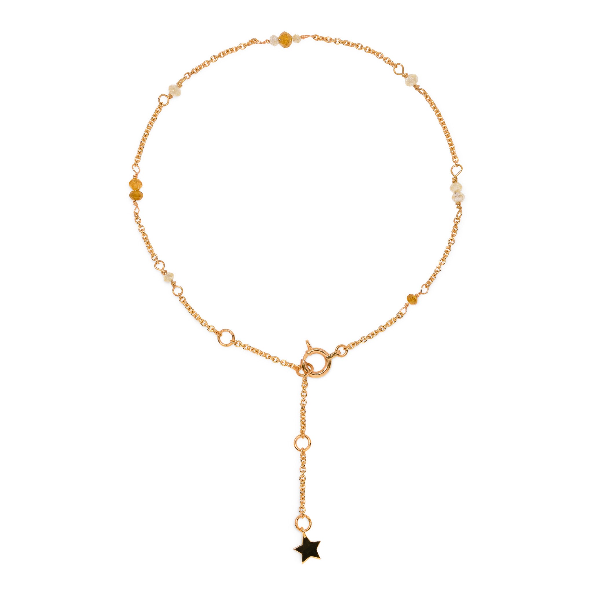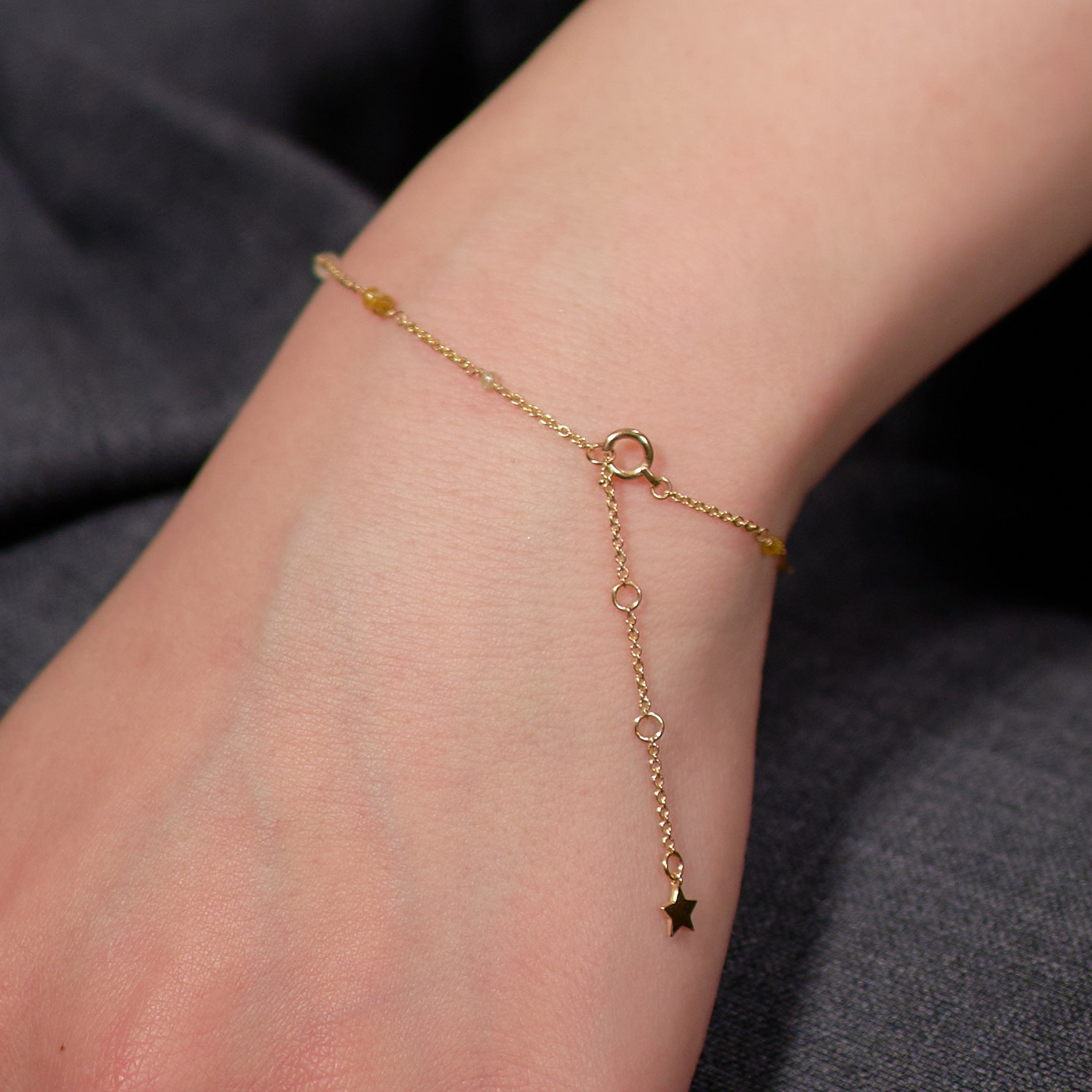 優しいイエローとアイスカラーのラフダイヤが、どこか懐かしさを感じさせる一本。静かな輝きをたたえるダイヤに、繊細なチェーンとゴールドの星のチャームを添えて。控えめなきらめきと程よい抜け感が魅力の、大人のカジュアルブレスレットです。