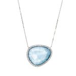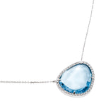 爽やかなブルートパーズと、繊細に輝くメレダイヤモンドのコントラストが美しいネックレスです。シンプルでいて、宝石のユニークな形が際立つデザイン。宝石の形に合わせ、一点ずつ丁寧にお作りしています。