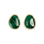 濃淡の緑色の帯のある模様が特徴のマラカイトに繊細に輝くメレダイヤモンドを取り巻きました。シンプルでいて、宝石のユニークな形が際立つデザイン。 宝石の形に合わせ、一点ずつ丁寧にお作りしています。ペアでのお作りです。